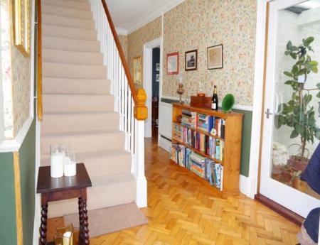HALLWAY: Parquet wood flooring. Stairs to the first floor with storage cupboard beneath. 2 Radiators. Picture rail. Feature coving and ceiling rose to ceiling. 2 Radiators.