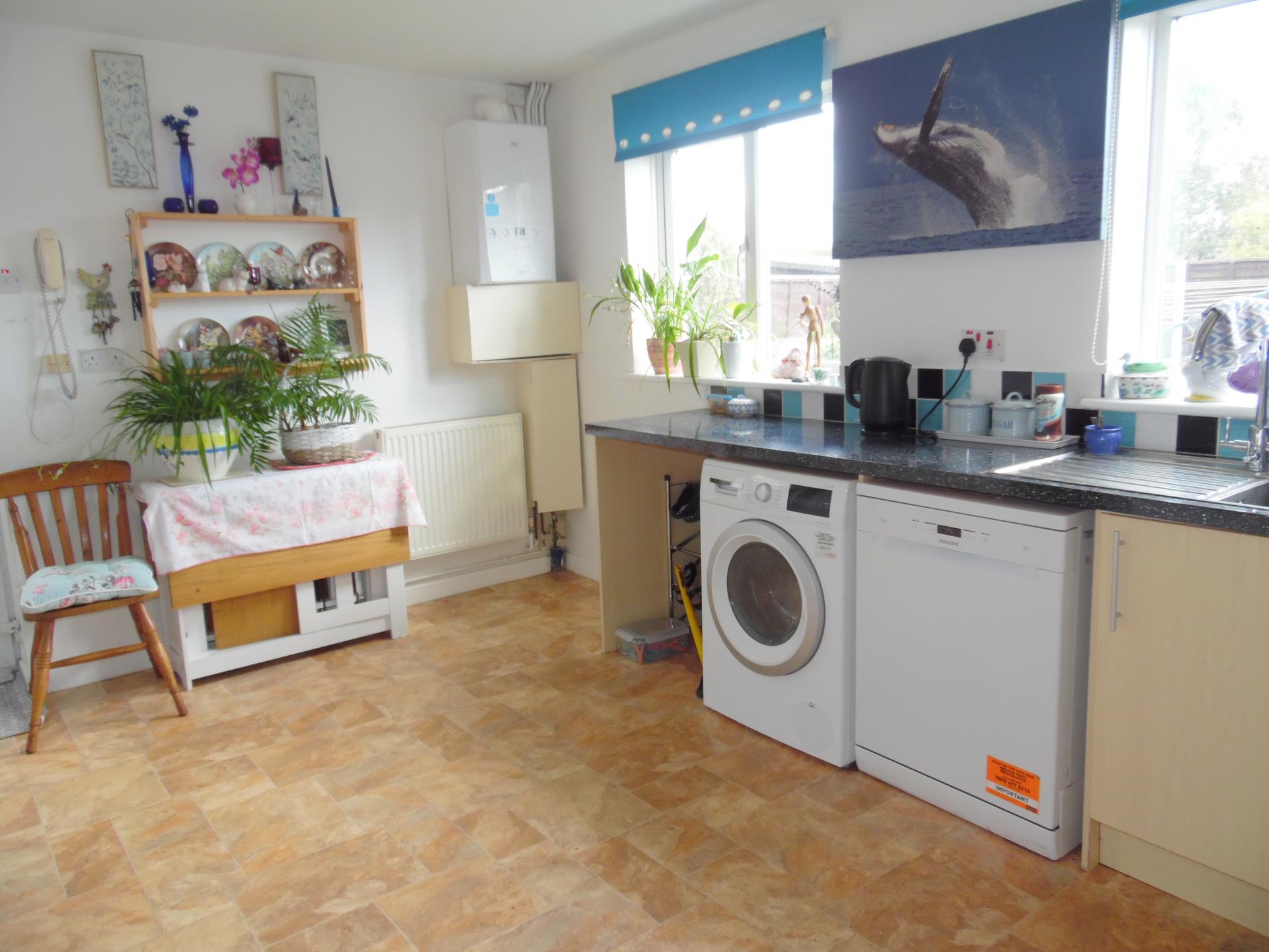 KITCHEN/DINER: 15'0 x 11'0 (4.58m x 3.36m) Upvc double glazed windows to the rear plus upvc double glazed door to the side. Modern base units with work tops over, tall slide out unit and matching wall units. Inset stainless steel sink and drainer with mixer tap. Integrated eye level oven, hob and extractor. Pull out larder unit, Pull out carousel storage units. Space for washing machine, dishwasher and fridge/freezer. Tiled splash backs. Radiator. Wall mounted gas fired boiler (18 months old). Built in under stairs storage cupboard.