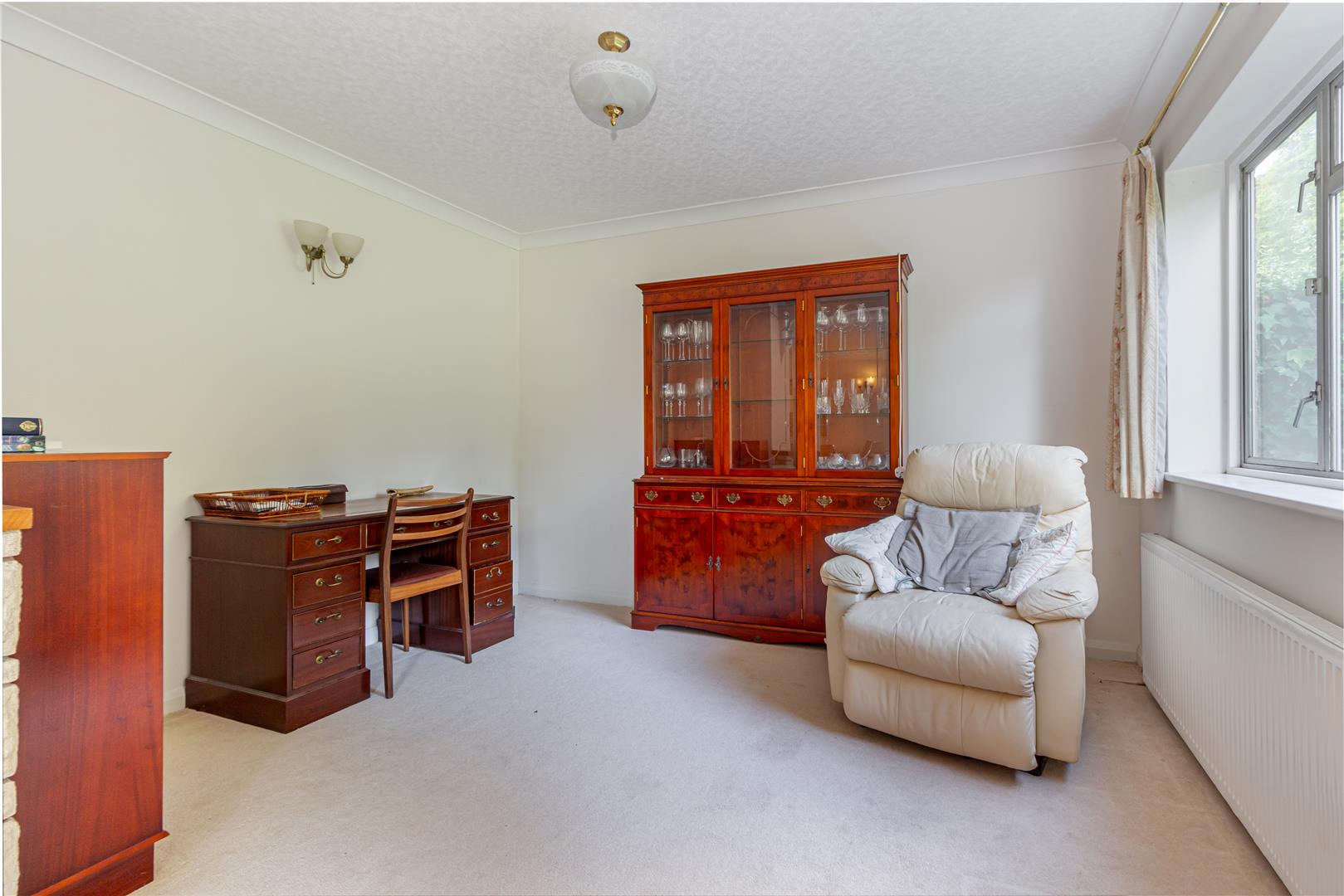 Study - The study is a peaceful room with a large window to the rear, allowing natural light to fill the space. It has a neutral carpet and walls, offering a perfect quiet workspace or reading room.