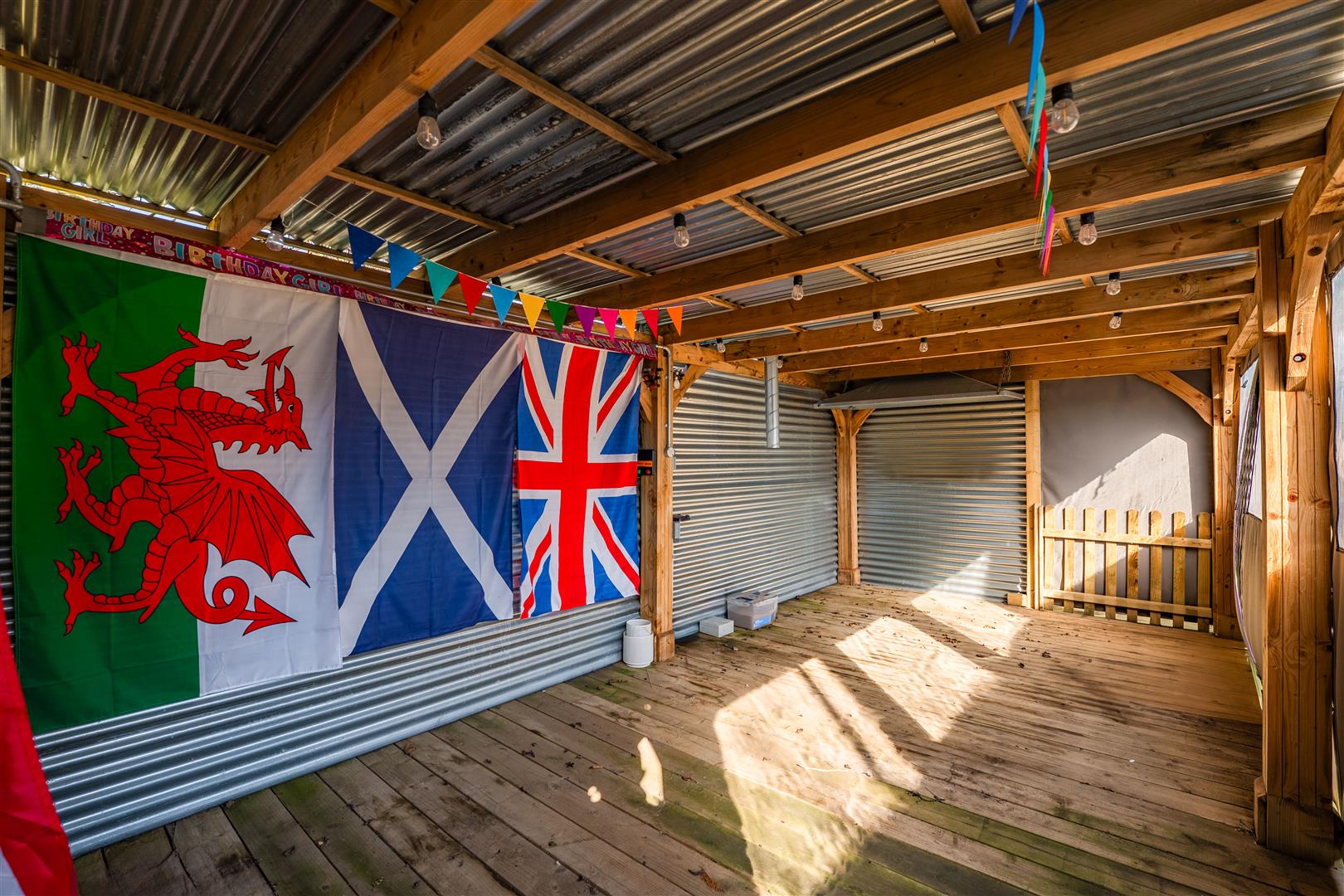 Pergola - 5.74m x 2.84m (18'10" x 9'4") - A timber framed pergola with open sides having power and light and provides an excellent outdoor covered seating space, perfect for entertaining at any time of year.