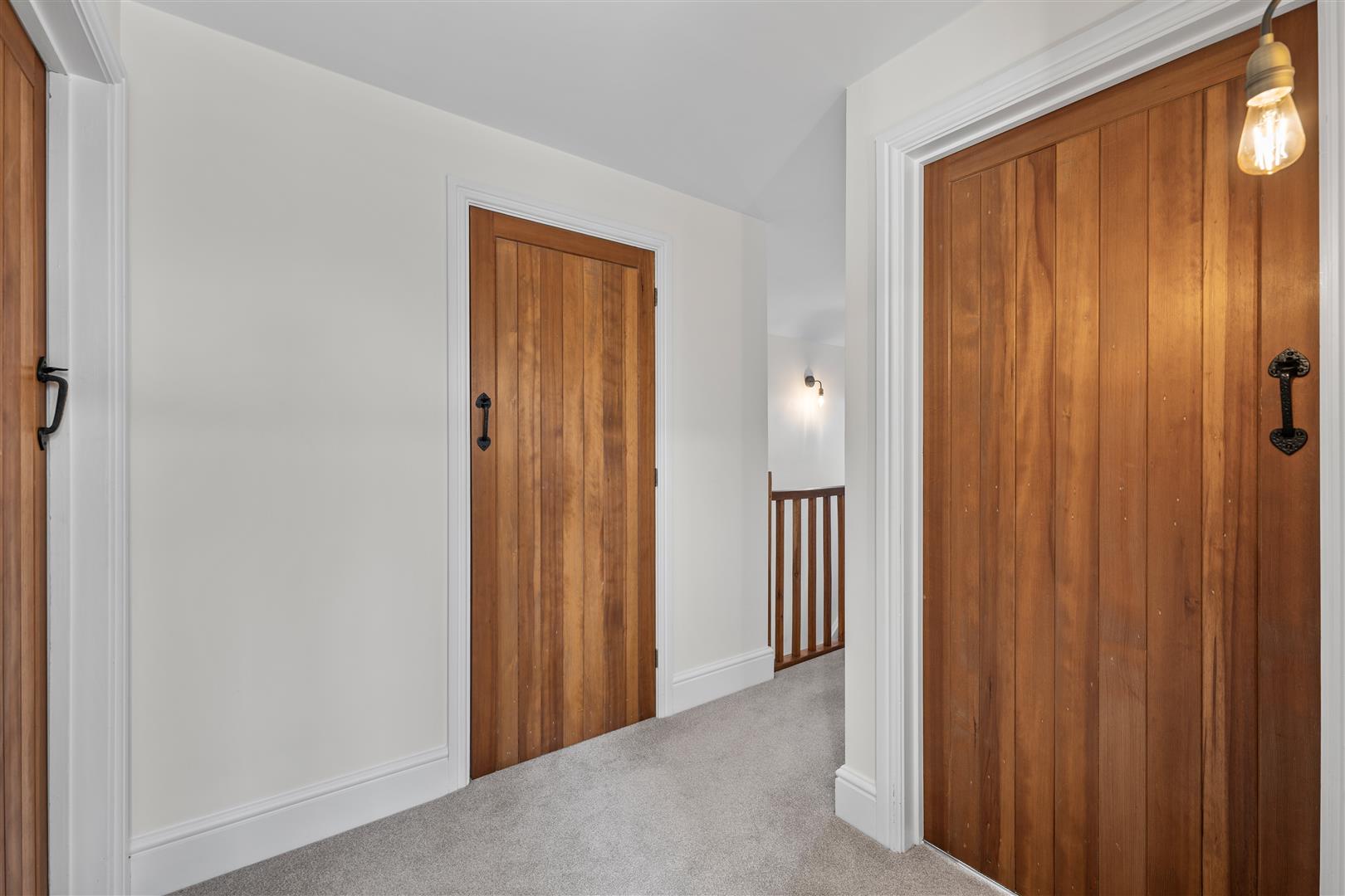 First Floor Galleried Landing - An attractive galleried landing having central heating radiator, double glazed window to the side, large built in walk in airing cupboard which houses the pressurised hot water system and offers an excellent level of storage and further cottage latch doors leading to: