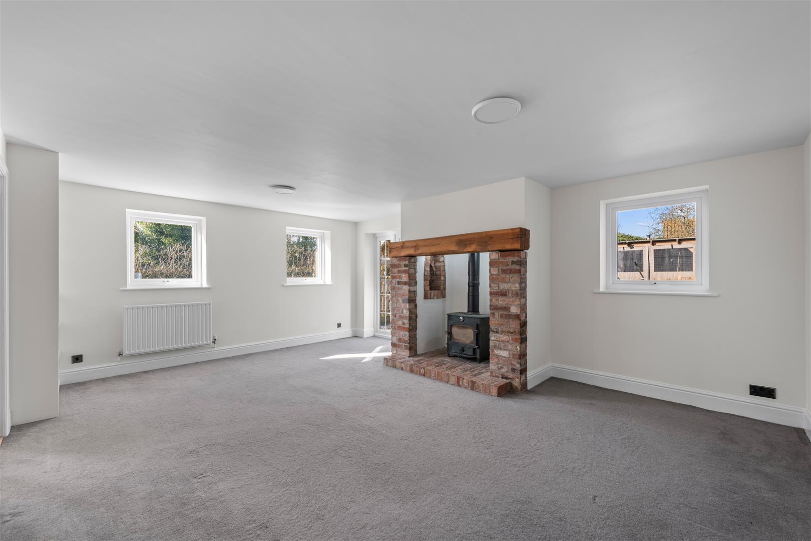 Sitting Room - 5.89m x 4.45m (19'4" x 14'7") - A well proportioned, light and airy reception benefitting from windows to two elevations including French doors leading out into the rear garden. The focal point to the room is an attractive inglenook fireplace with exposed brick piers and hearth, inset solid fuel stove and alcoves to the side. The room also having deep skirtings, fitted shelving, central heating radiator and glazed double doors leading through into: