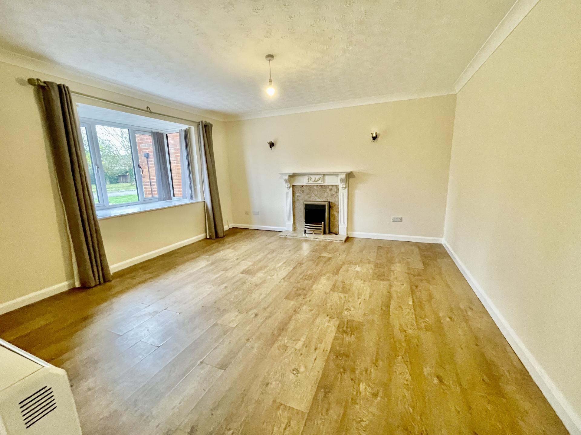 LOUNGE 14' 0" x 15' 11" (4.27m x 4.86m) into bay UPVC double glazed bay window to the front elevation, coved and textured ceiling, centre light point, 2 wall lights, laminate flooring, TV point, electric storage heater, feature fireplace with wooden surround, marble insert and hearth with electric fire.
