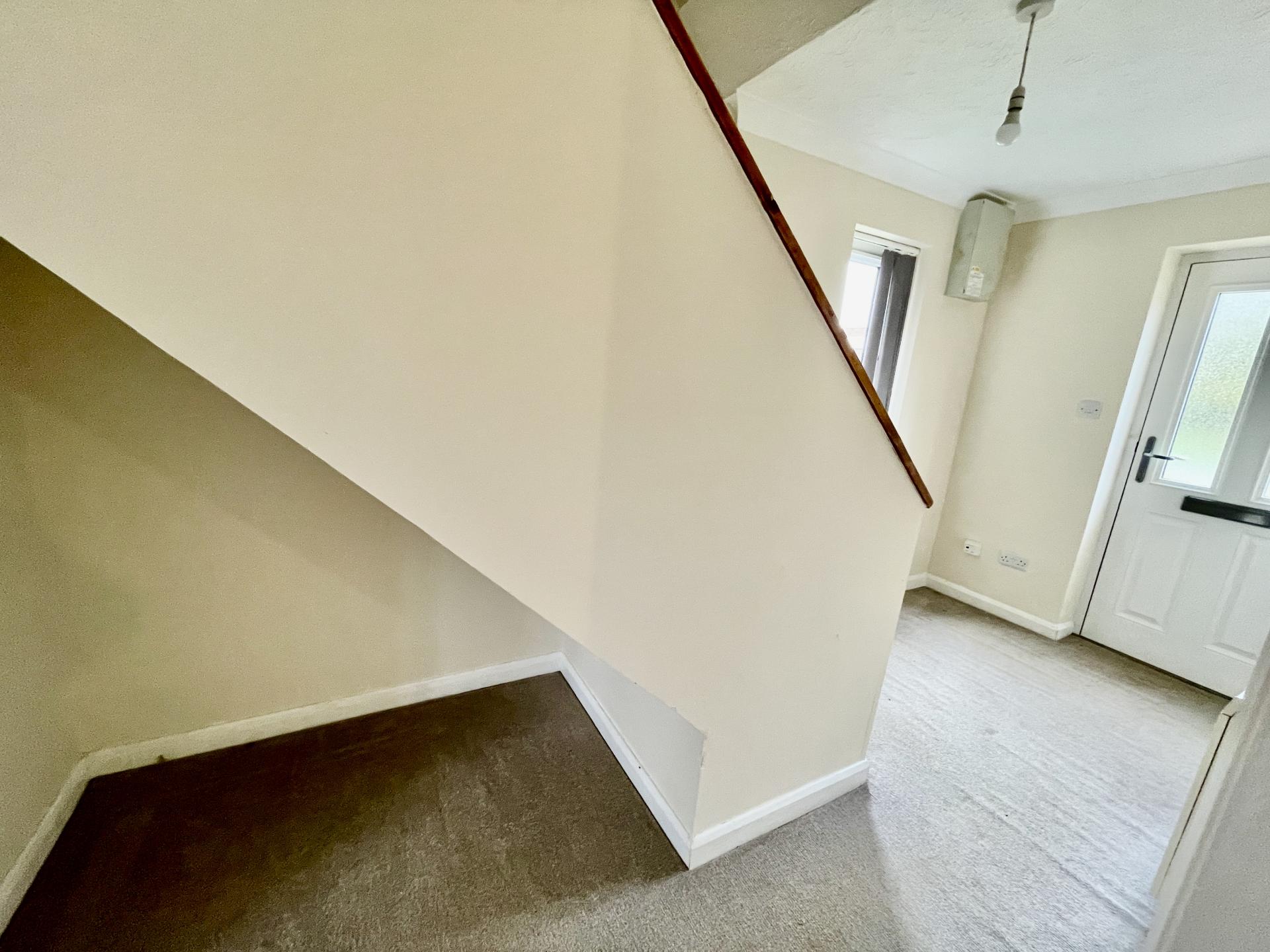 ENTRANCE HALLWAY 5' 9" x 13' 11" (1.77m x 4.26m) UPVC double glazed window to the side elevation, coved and textured ceiling, centre light point, smoke alarm, electric storage heater, staircase to the first floor, understairs storage area, door into: