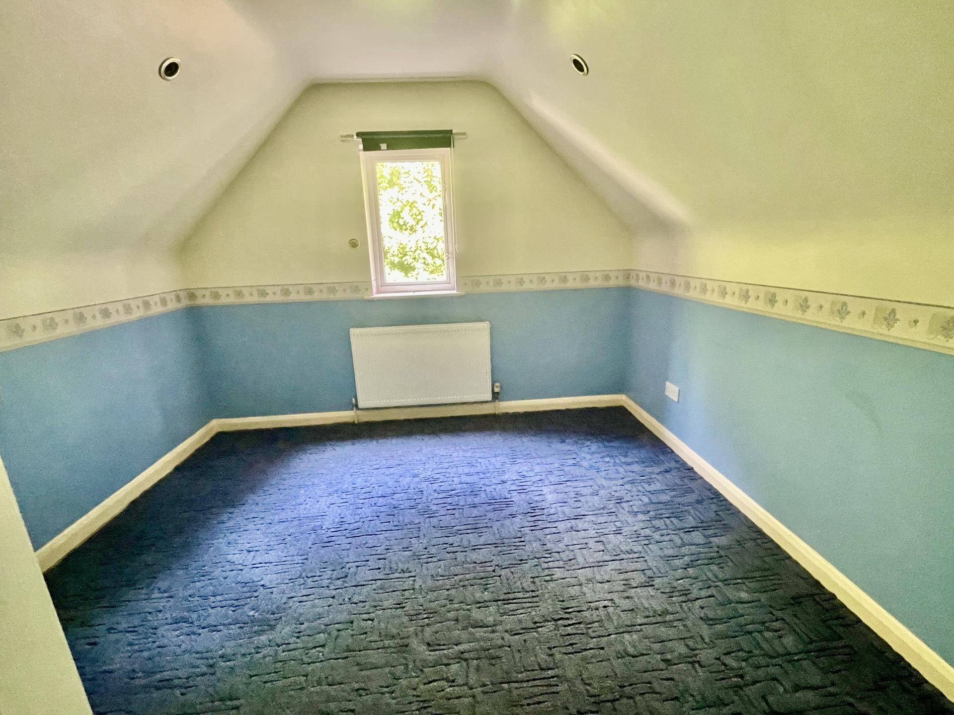STUDY/BEDROOM 8' 5" x 10' 2" (2.58m x 3.10m) UPVC double glazed window to the rear elevation, coved and textured ceiling, centre strip light, access to loft, smoke alarm, radiator, BT point.