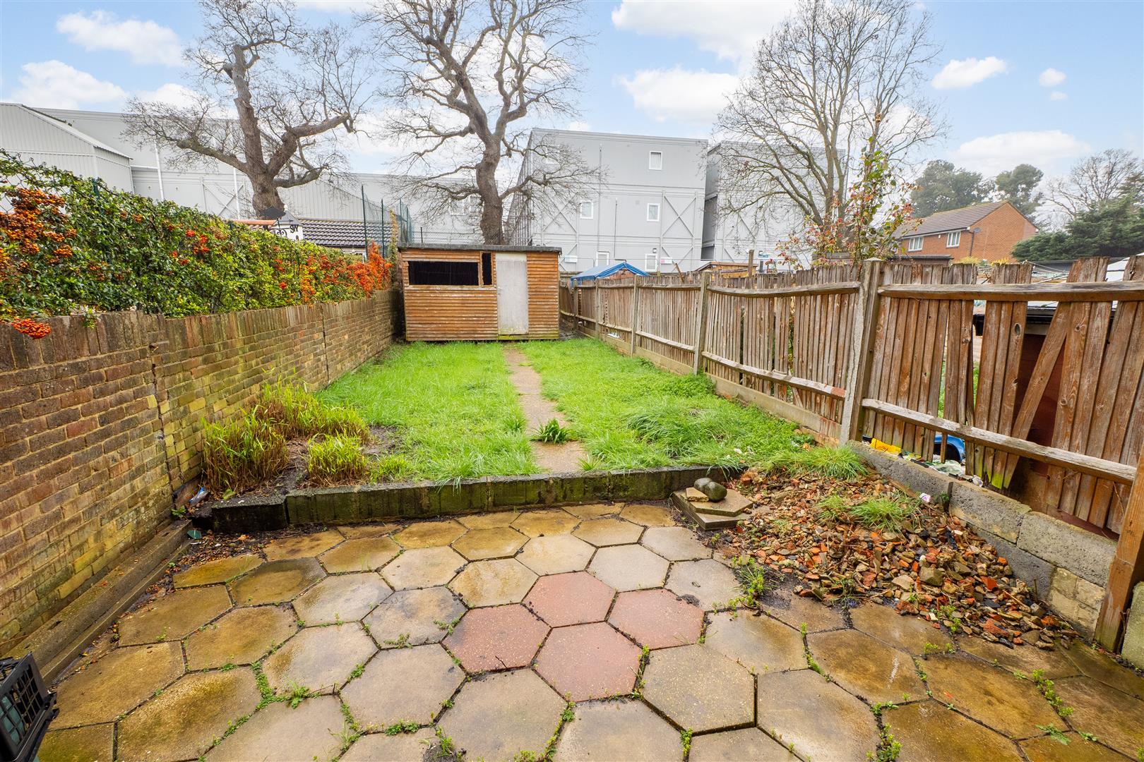 - Level rear garden