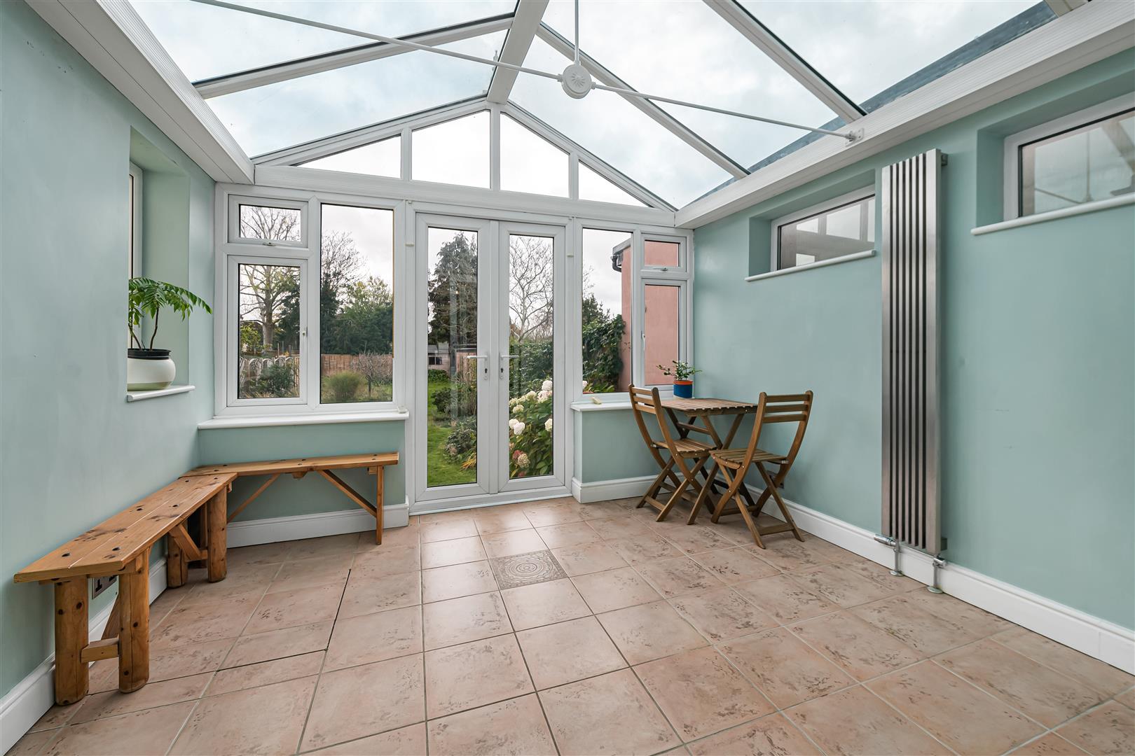 - Pitched-glazed conservatory overlooking garden