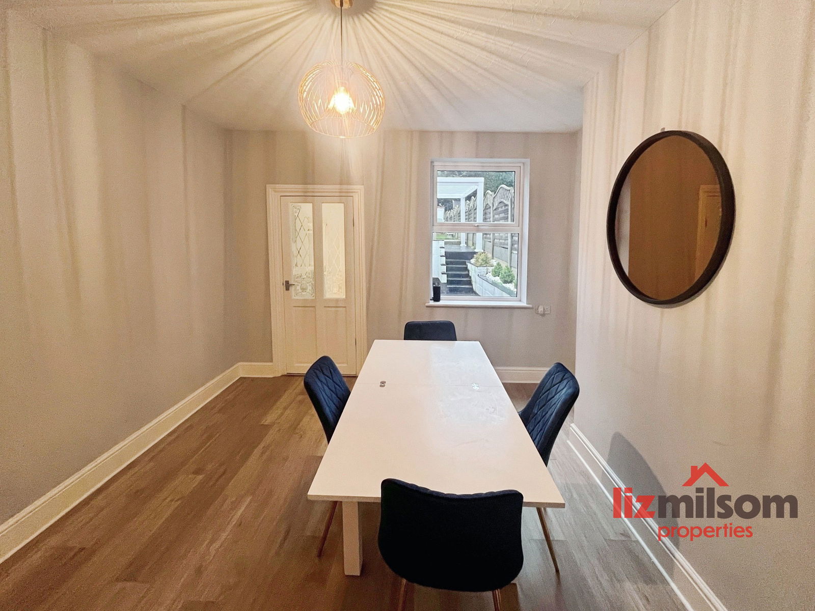 - Separate dining room with garden views