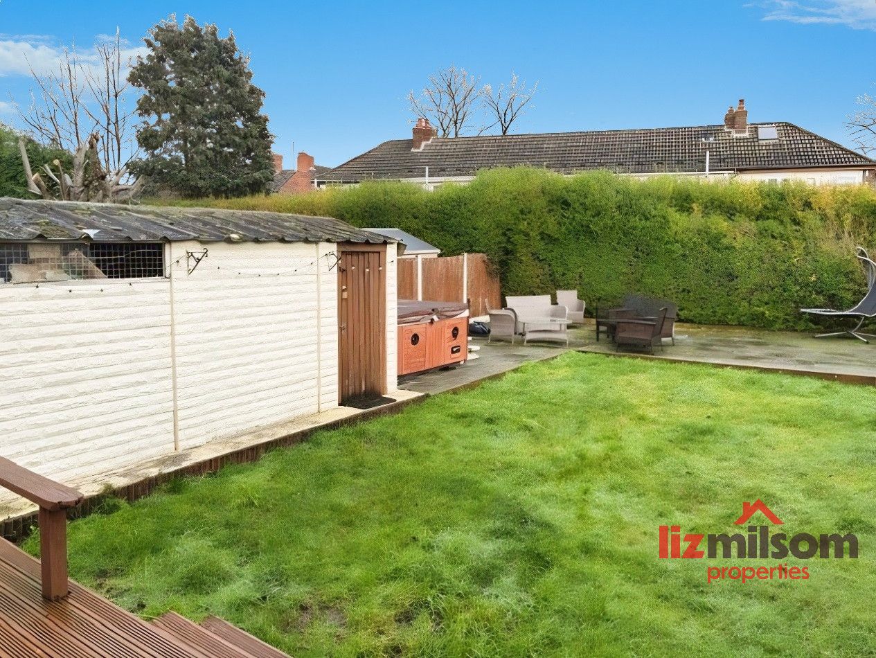 Externally, the rear garden is a real highlight of the property. It is well screened by fenced boundaries and mature trees, offering a high degree of privacy. The garden is mainly laid to lawn with two generous patio areas, ideal for outdoor dining and entertaining. A door from the garden provides internal access to the linked garage, which offers excellent storage space or potential for use as a workshop.