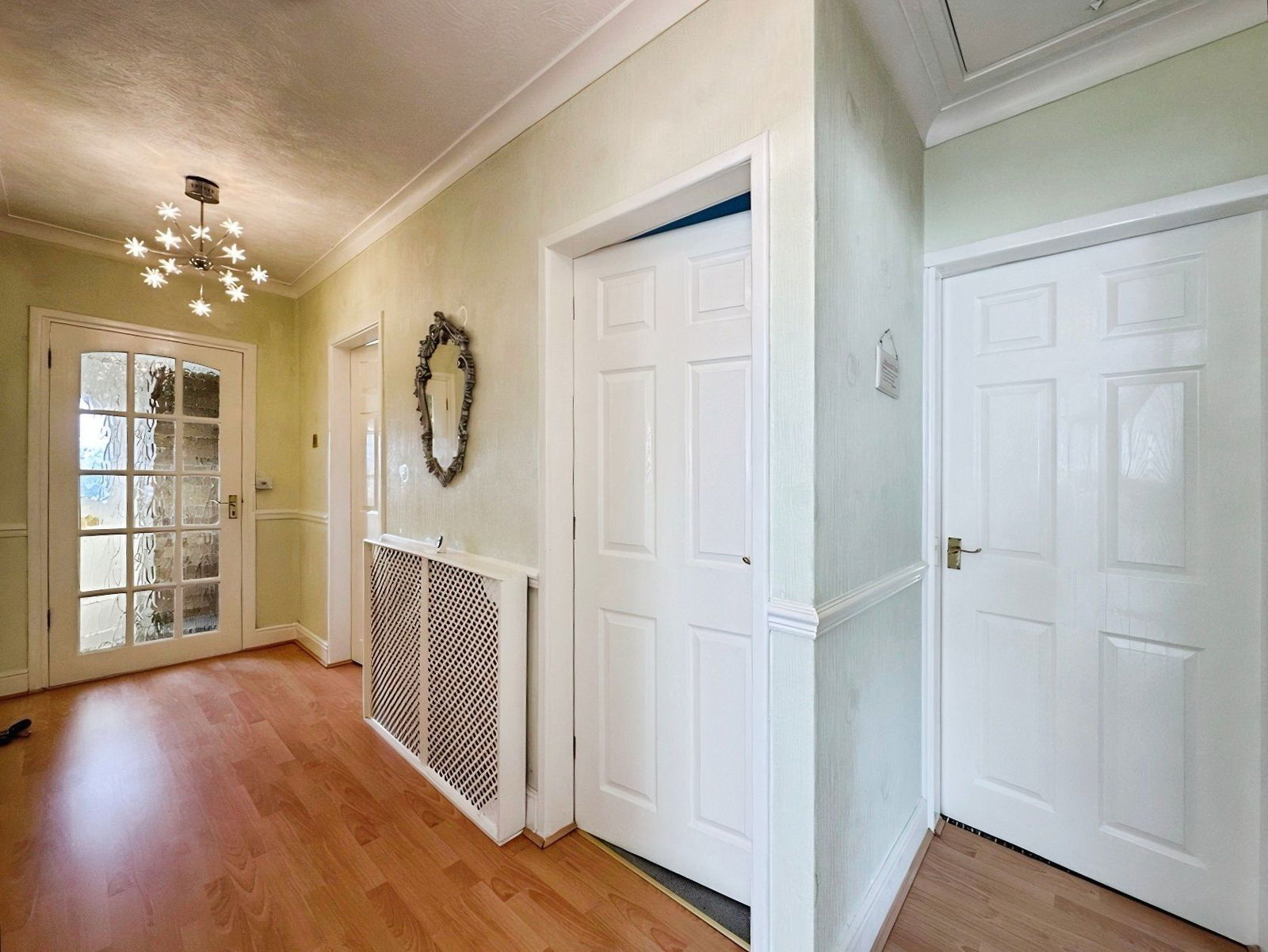 The internal accommodation is spacious, light-filled, and thoughtfully designed. Upon entering, you are greeted by a generous Reception Hallway featuring laminate-style flooring and doors leading to the Kitchen/Diner, three Bedrooms, and the Family Shower Room.