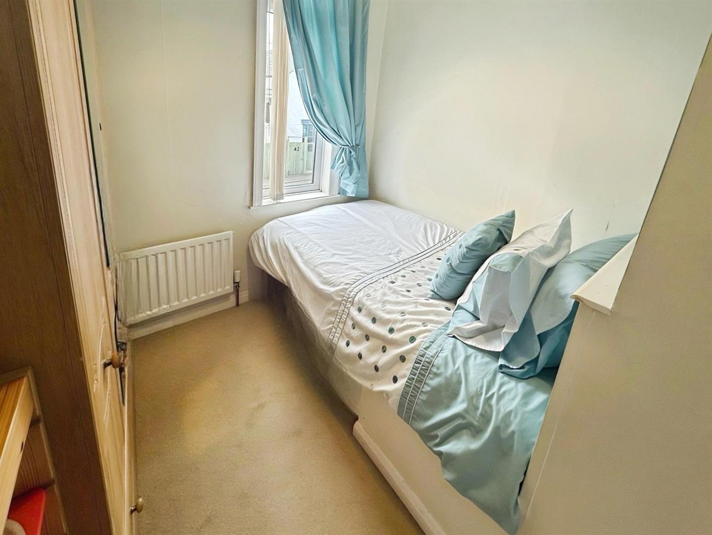 The second DOUBLE Bedroom enjoys views over the stunning rear garden and is similarly appointed with carpeted flooring, radiator and centre light point. The third Bedroom is a single room located to the front, featuring a built-in single bed over the bulkhead, along with carpeted flooring, radiator and central light fitting.