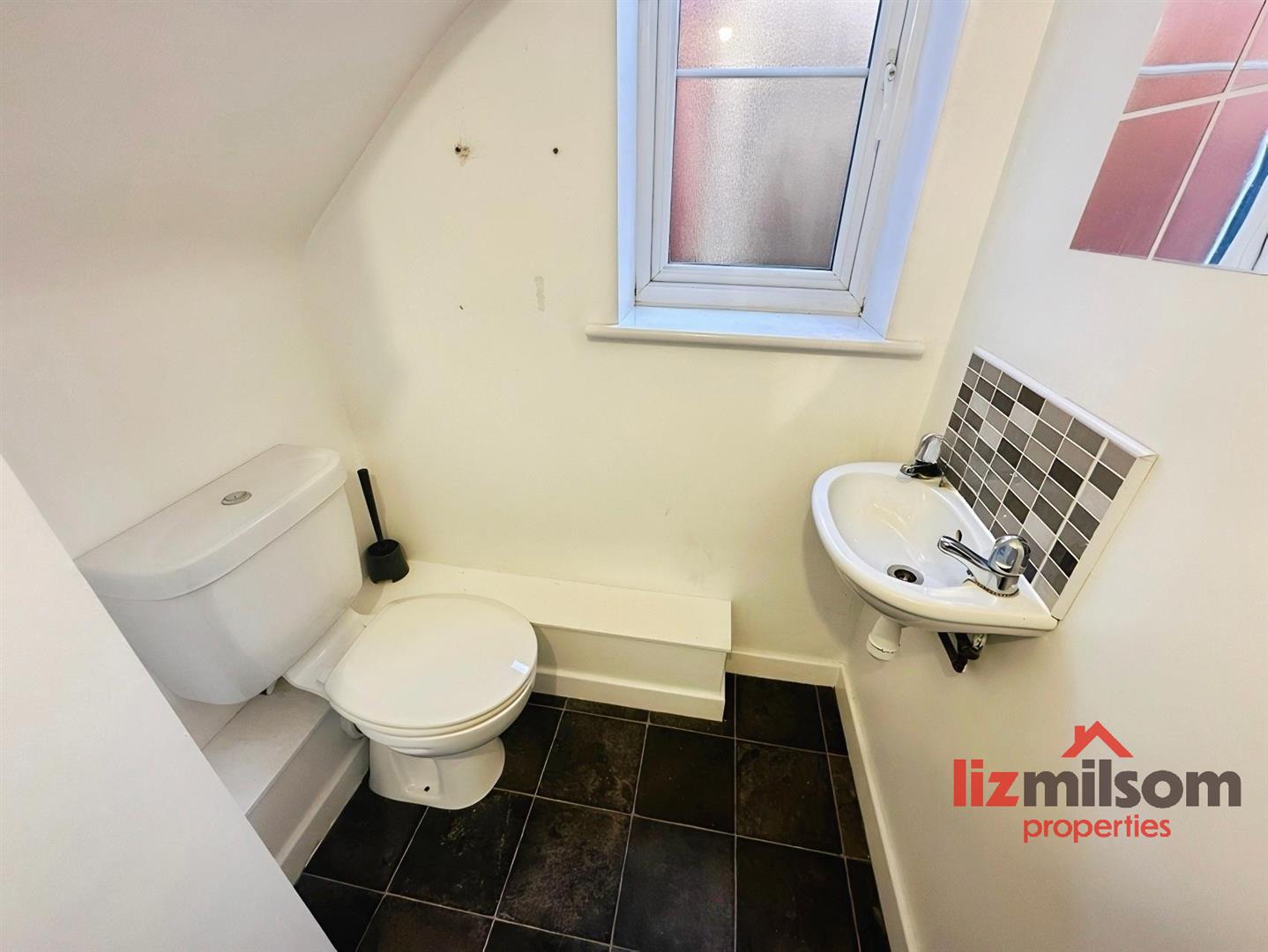 The property sits as a Semi-Detached home adjoining an identically designed neighbouring property. The Entrance Hallway provides access to the First Floor accommodation and leads through to the Breakfast Kitchen. The Breakfast Kitchen is fitted with a range of wall and floor mounted units with inset sink and drainer, electric oven with gas hob and extractor over, together with plumbing and space for additional appliances. A door from the Kitchen leads through to the Ground Floor Cloaks/WC, which is fitted with a two-piece suite comprising a low level WC and wash hand basin, with vinyl flooring and a window to the side elevation providing natural light.