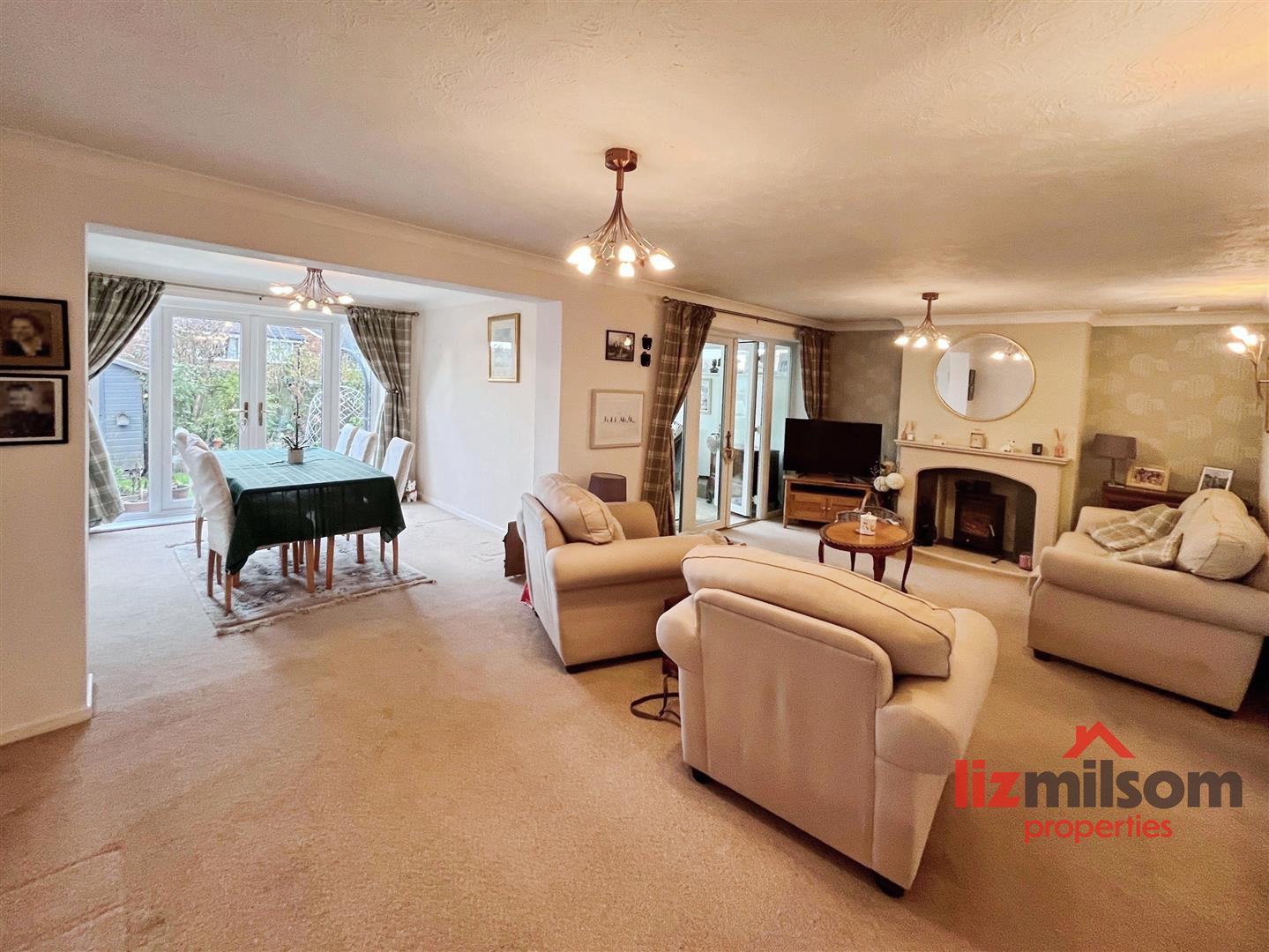 - Large L-shaped lounge/diner with multi-fuel log burner and French doors to the rear garden