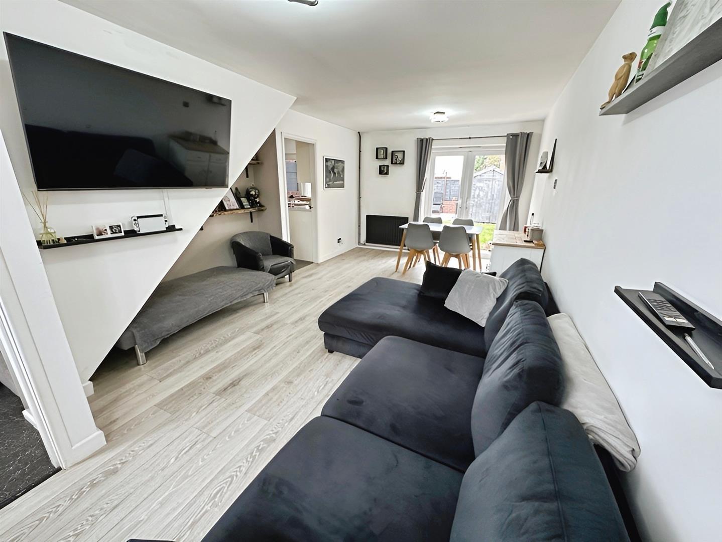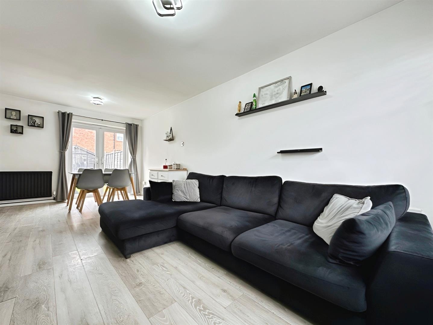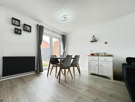 The Reception Hallway provides a warm welcome, with stairs rising to the first-floor landing and a door opening into the beautifully presented Lounge/Diner. This spacious, dual-aspect living area enjoys natural light from a front-facing window and rear patio doors, which open out onto the rear garden—perfect for indoor-outdoor entertaining.