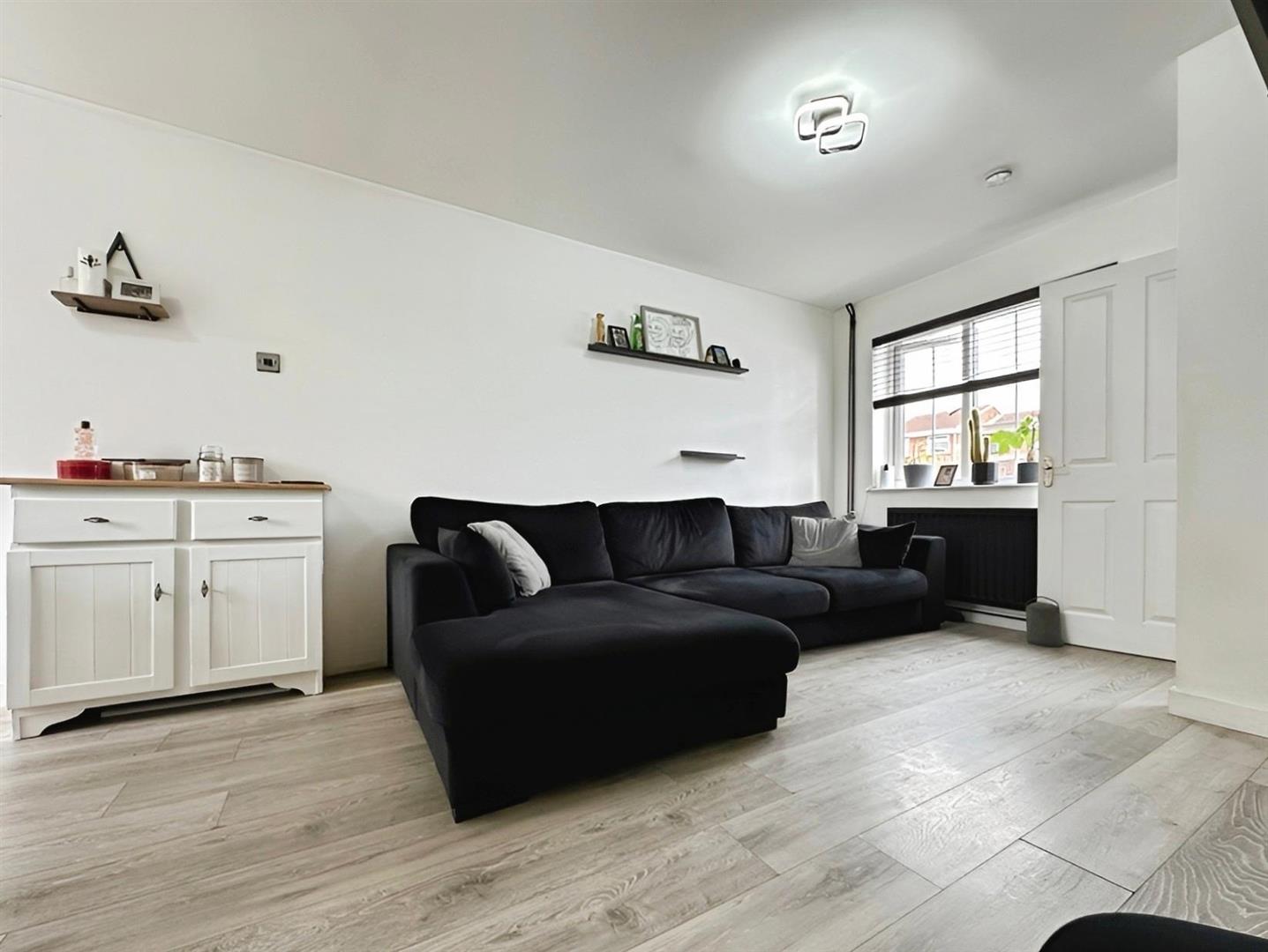 The Reception Hallway provides a warm welcome, with stairs rising to the first-floor landing and a door opening into the beautifully presented Lounge/Diner. This spacious, dual-aspect living area enjoys natural light from a front-facing window and rear patio doors, which open out onto the rear garden—perfect for indoor-outdoor entertaining.