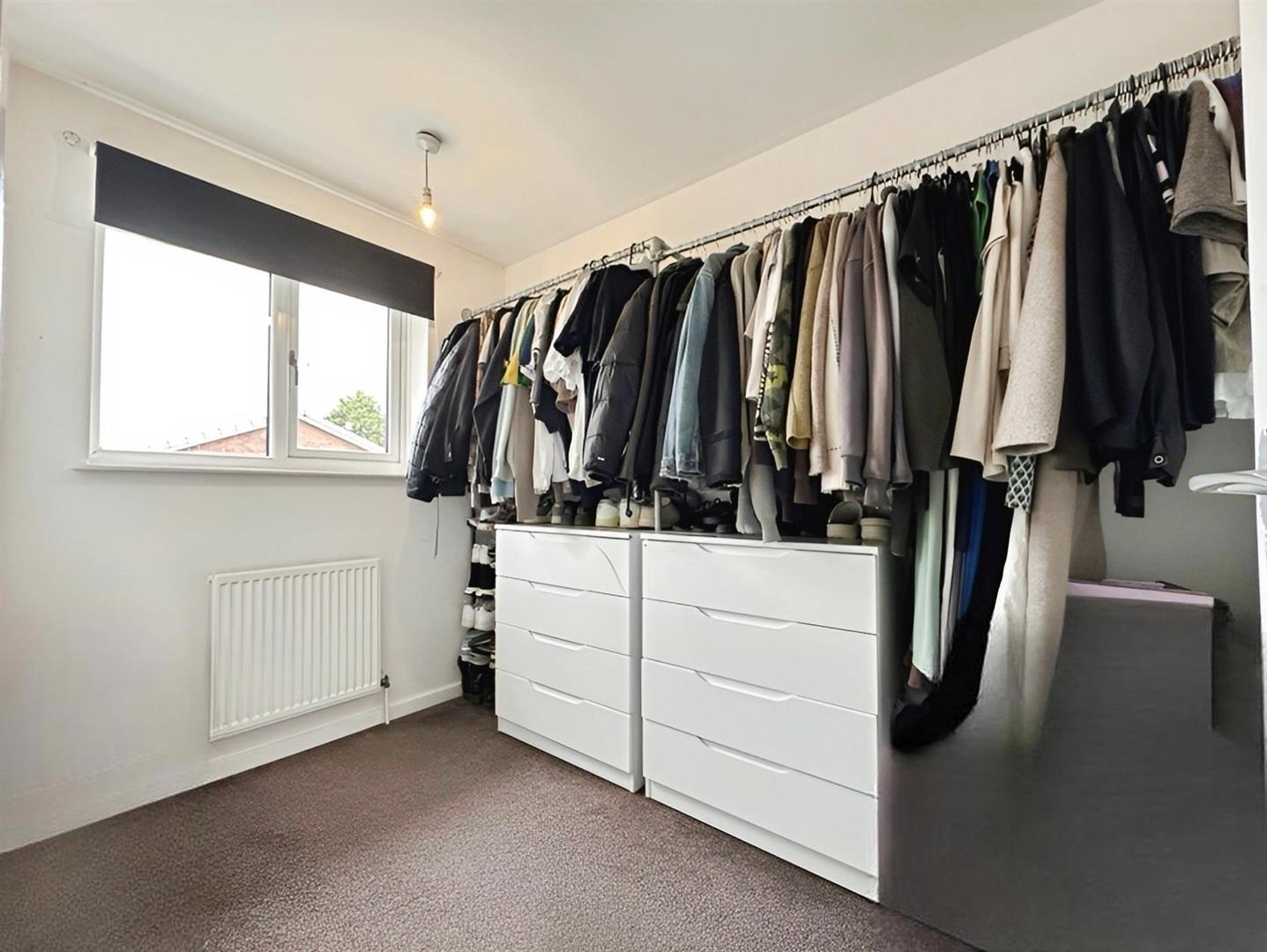Bedroom Three is a large single bedroom overlooking the rear elevation, currently utilised by the vendors as a Dressing Room. With carpeted flooring, radiator, and central light point, this versatile room could also serve as a nursery, study, or home office.