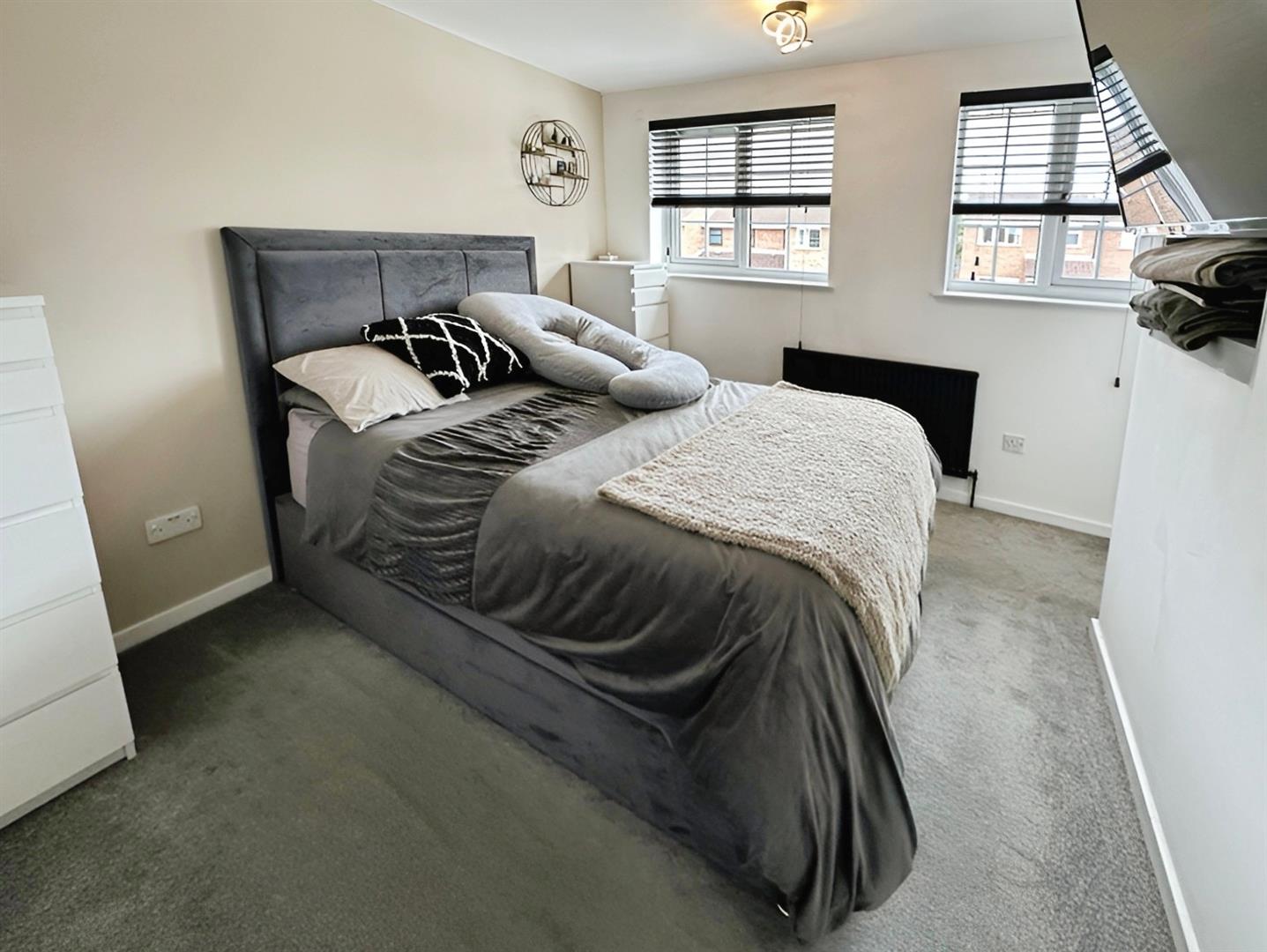 Bedroom Two is also located to the front elevation and offers another spacious double room. This room benefits from carpet flooring, a radiator, and centre ceiling light, making it ideal as a guest room or additional family accommodation.