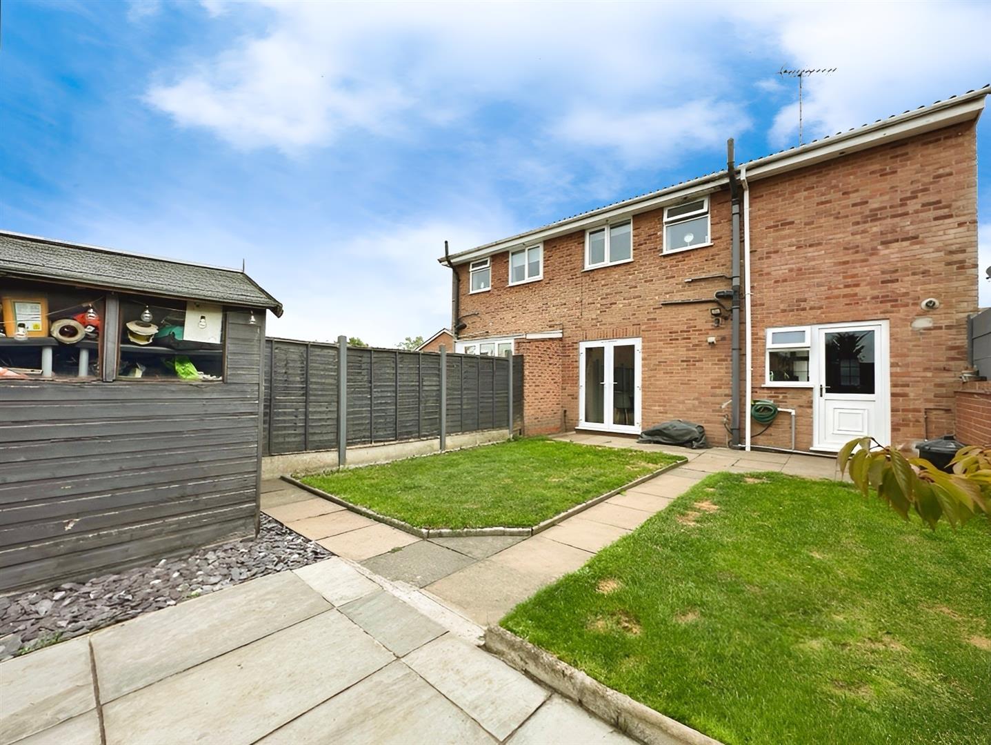The rear garden offers a private and well-maintained outdoor space, with no direct overlooking, making it perfect for both relaxing and entertaining. Enclosed by panelled fencing, the garden features a generous patio area, a lawned section, and a secondary seating area—perfectly positioned to enjoy the late summer sun.