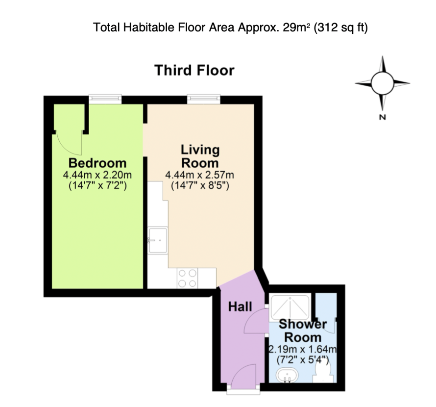 Bedroom Area 4.44m x 2.2m (14'7" x 7'2")