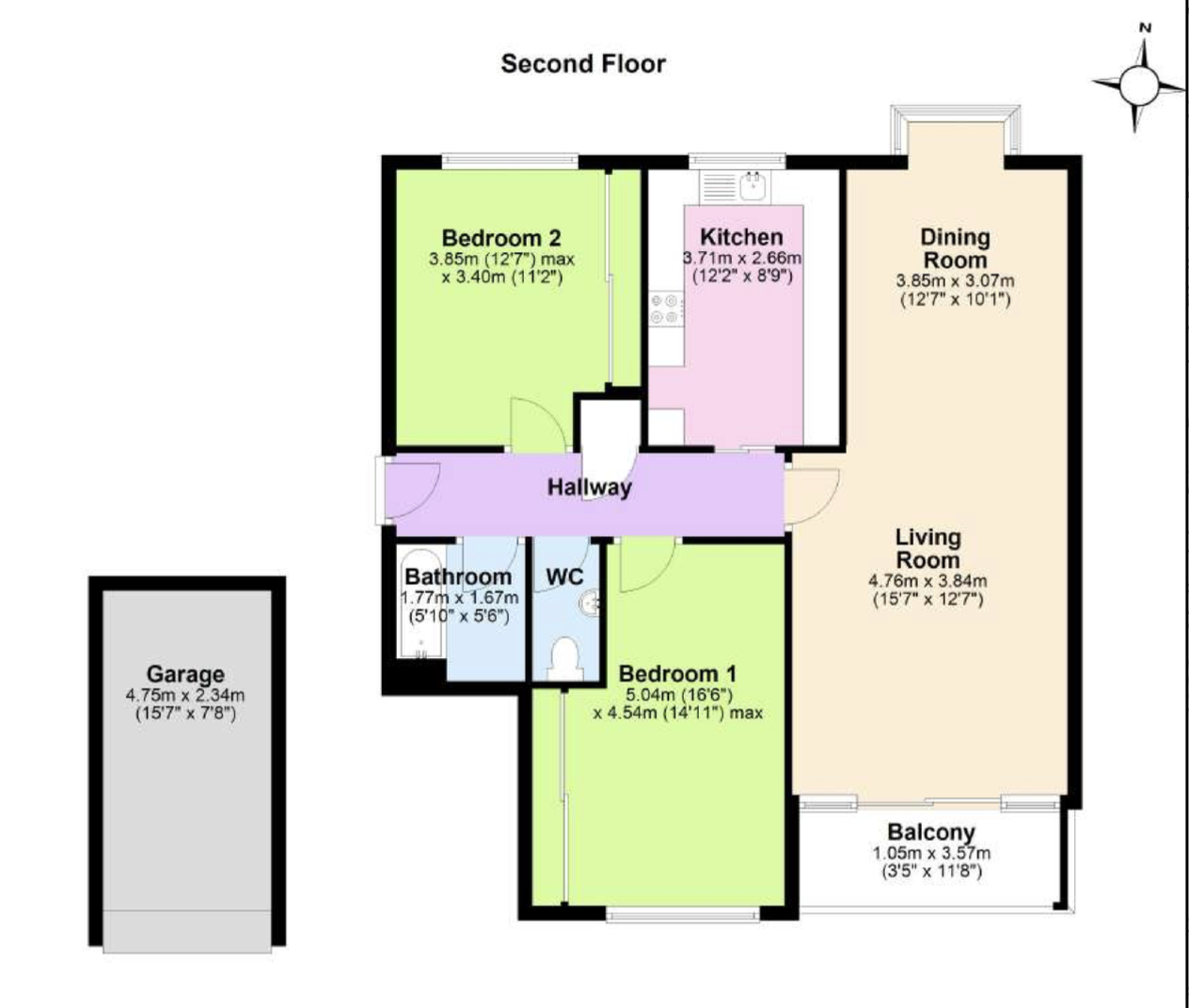 Garage 4.75m x 2.3m (15'7" x 7'8")