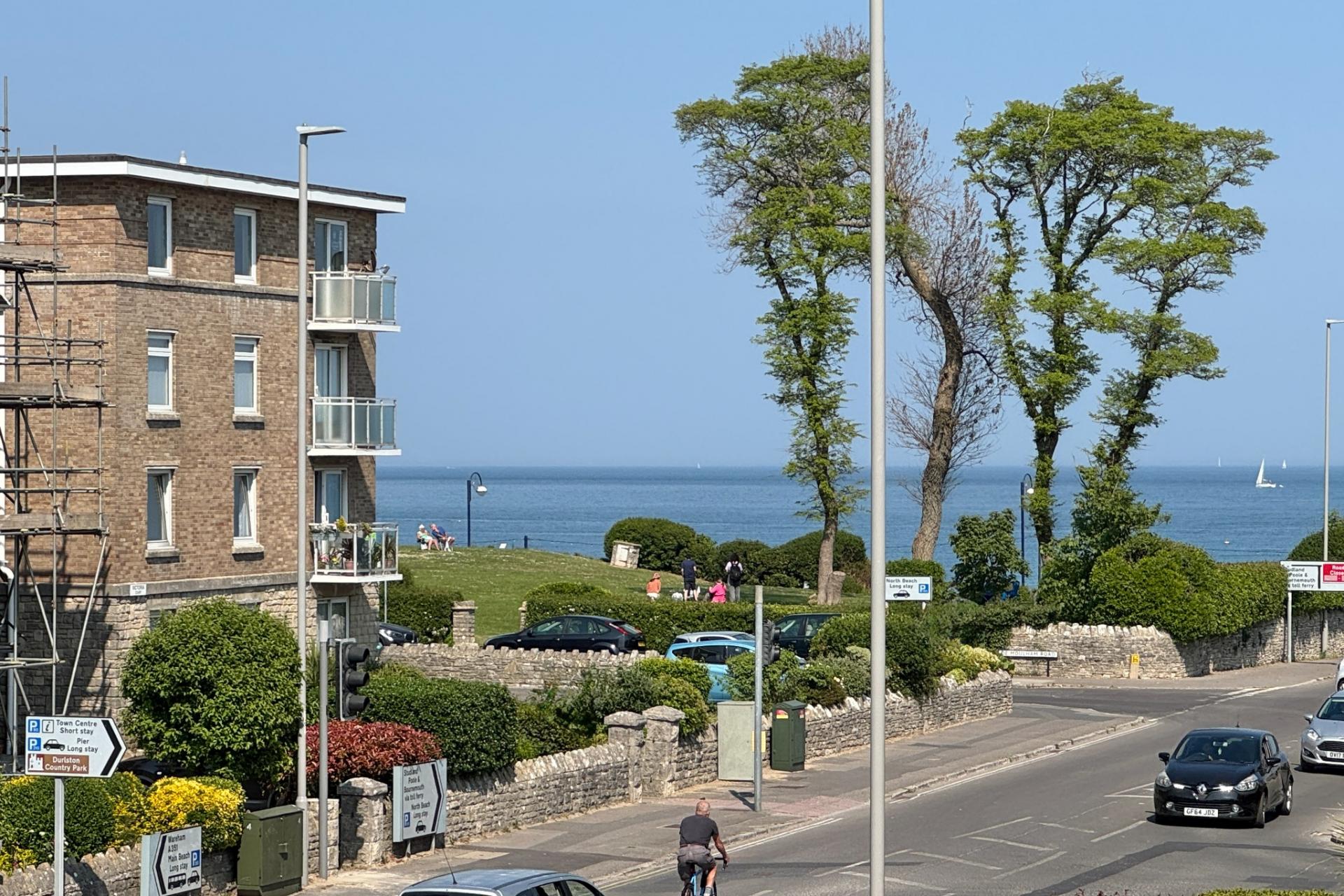 This spacious second floor apartment is well situated in the centre of Swanage about 150 metres from the seafront and a similar distance from the main shopping thoroughfare. The apartment offers particularly spacious accommodation, with a private South facing balcony off the living room and views of the sea. It also has the advantage of lift access and a single garage. Please note that the apartment is currently undergoing some re-decoration.