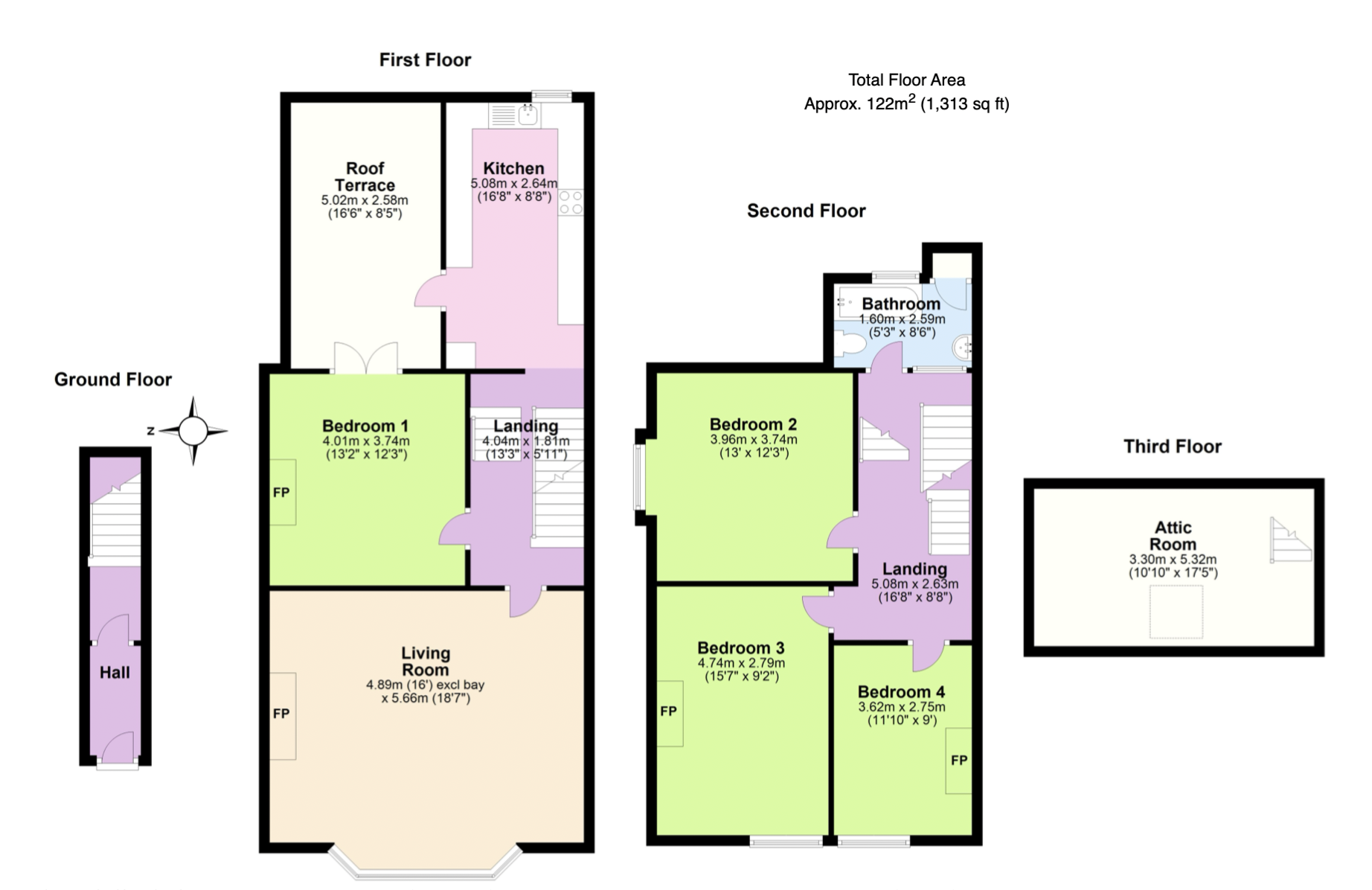 On the second floor there are three double bedrooms; bedroom two is at the rear of the building, bedrooms three and four are both West facing. The family bathroom is fitted with a white suite including bath with shower over. The attic room is accessed from a paddle staircase leading from the second floor landing.