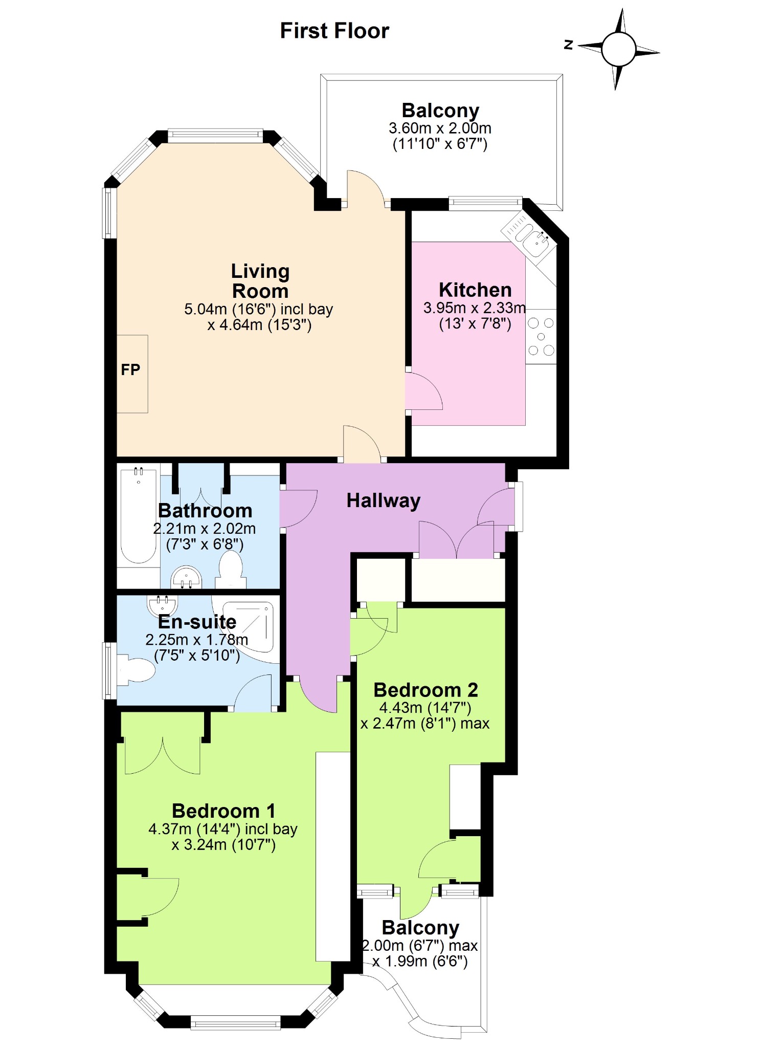 Bedroom 1 4.37m inc bay x 3.24m (14'4" inc bay x 10'7")