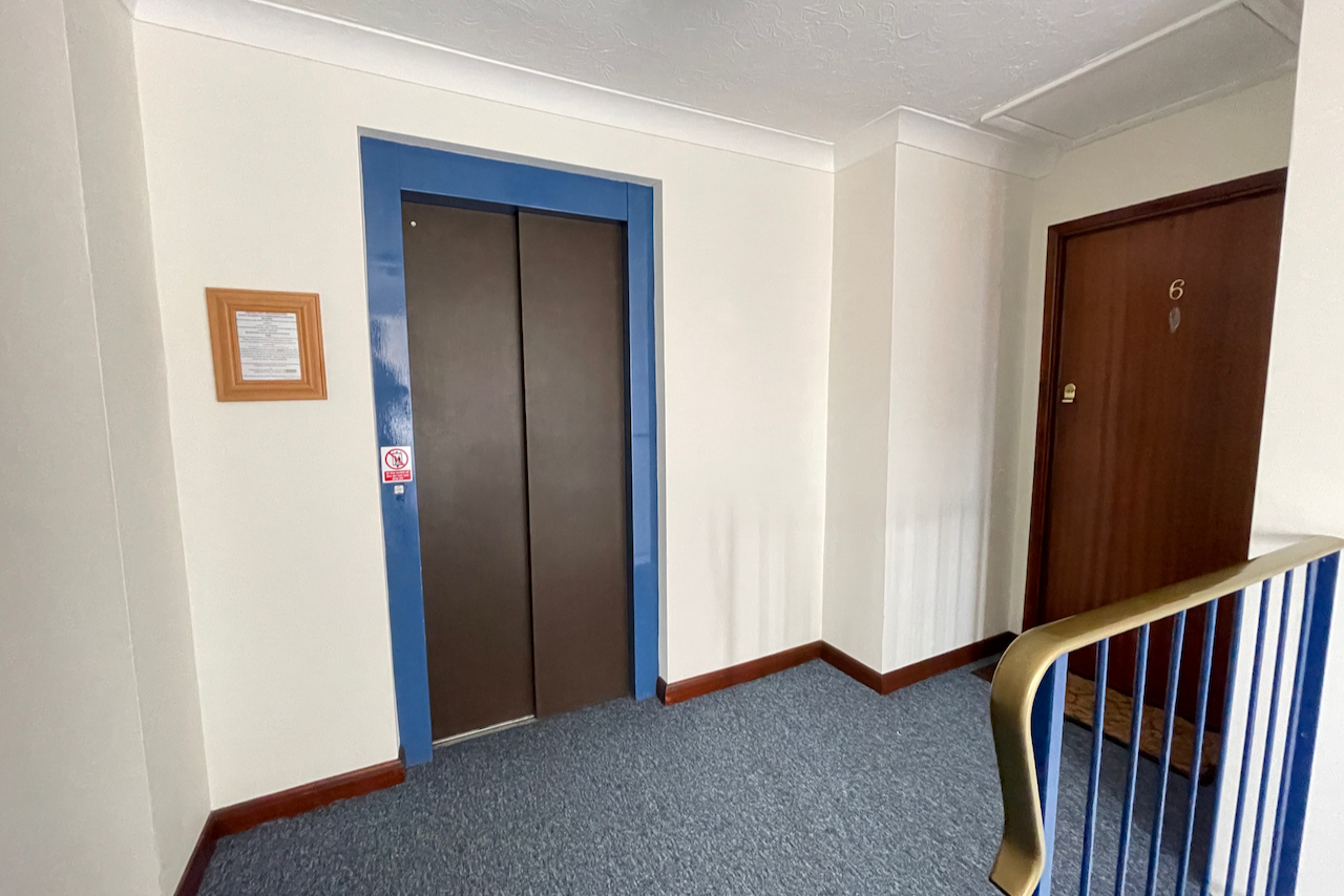 Whilst in need of some updating the apartment has the benefit of a large living room, en-suite master bedroom and lift access. There is also a personal storage cupboard located outside the entrance door on the second floor.