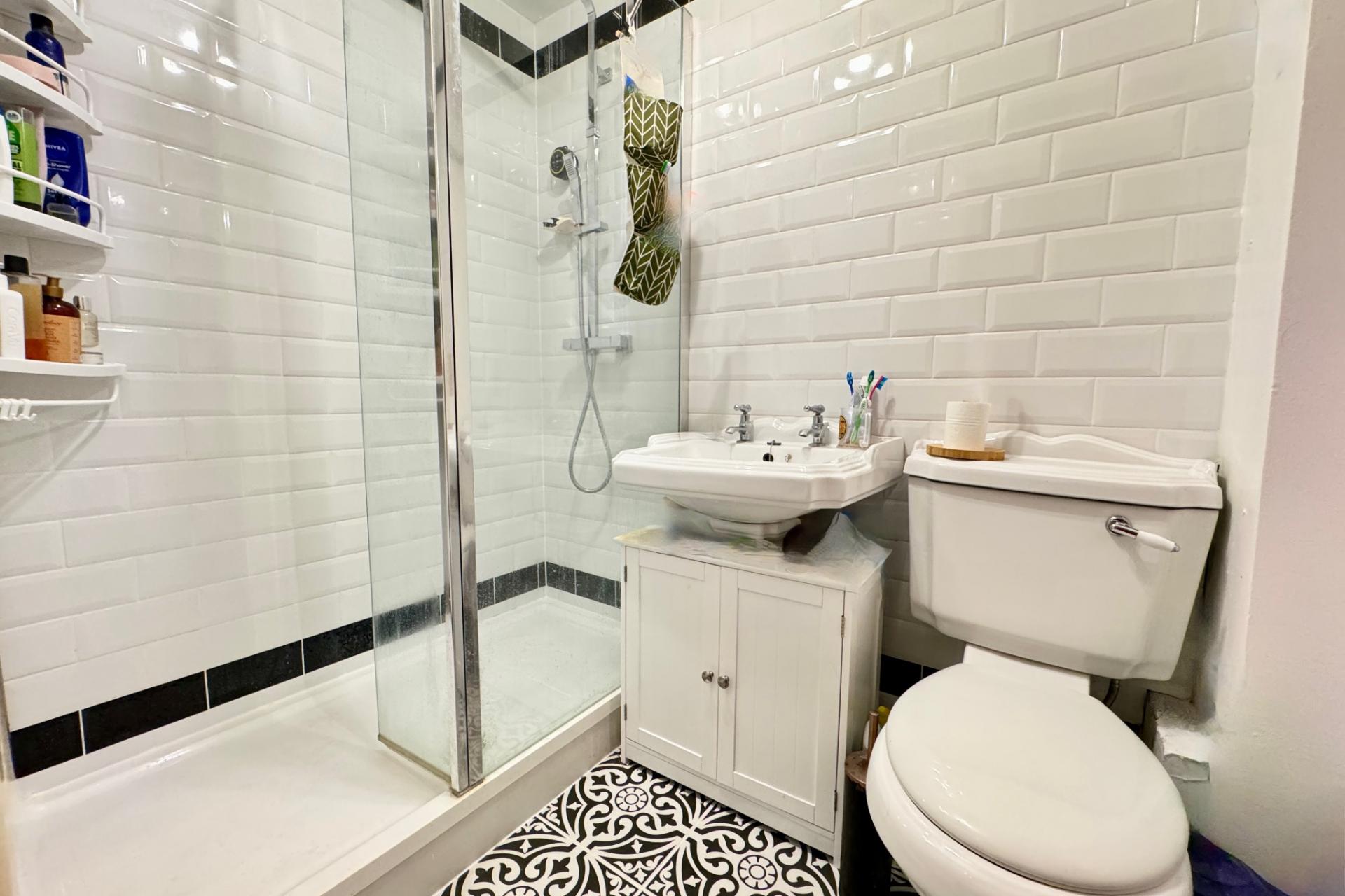 The double bedroom is also at the front of property. The stylish shower room has been refitted in recent years with a large walk-in shower with glazed screen and completes the accommodation.