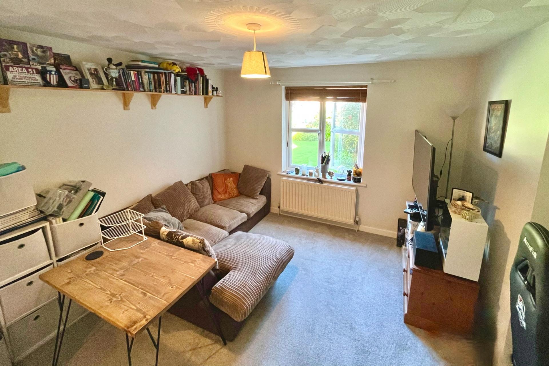 Outside, the attractive communal front garden is mostly laid to lawn with flower and shrub borders. Allocated parking space at the rear of the property for one vehicle.
