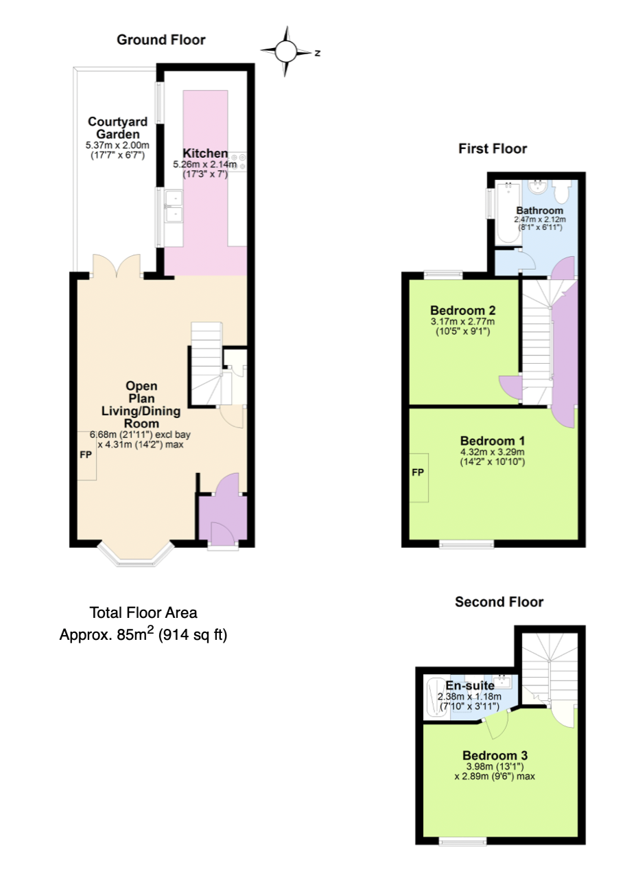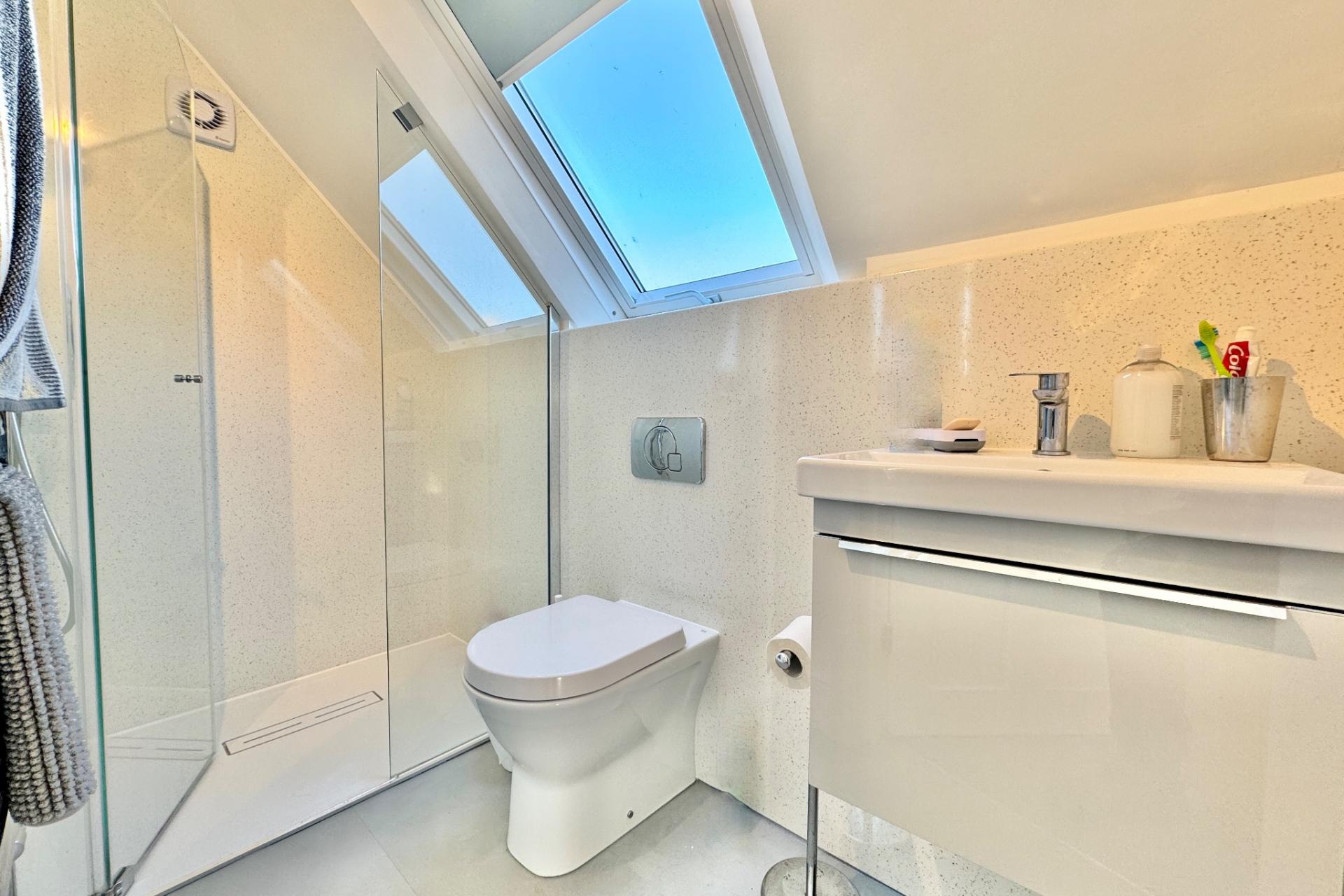 On the first floor are two double bedrooms, the master is particularly spacious and is situated at the front of the property. Bedroom two is also a good sized double and is West facing. There is also a modern family bathroom on this level. Bedroom three is a further double situated on the second floor with dual aspect and an en-suite shower room.