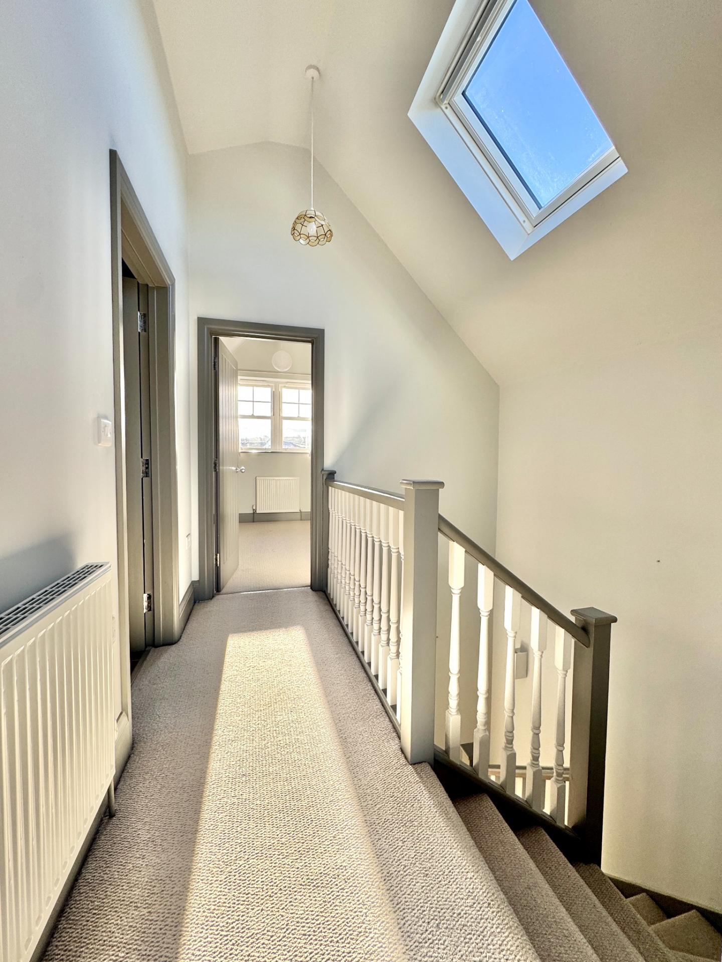 On the first floor there are two spacious double bedrooms with vaulted ceilings. Bedroom two is at the rear of the property and has double doors opening to a Juliet balcony enjoying views to the Purbeck Hills. Bedroom three is dual aspect; both bedrooms have fitted wardrobes and access to the eaves. The large family bathroom is fitted with a modern suite including a panelled bath and separate walk-in shower.