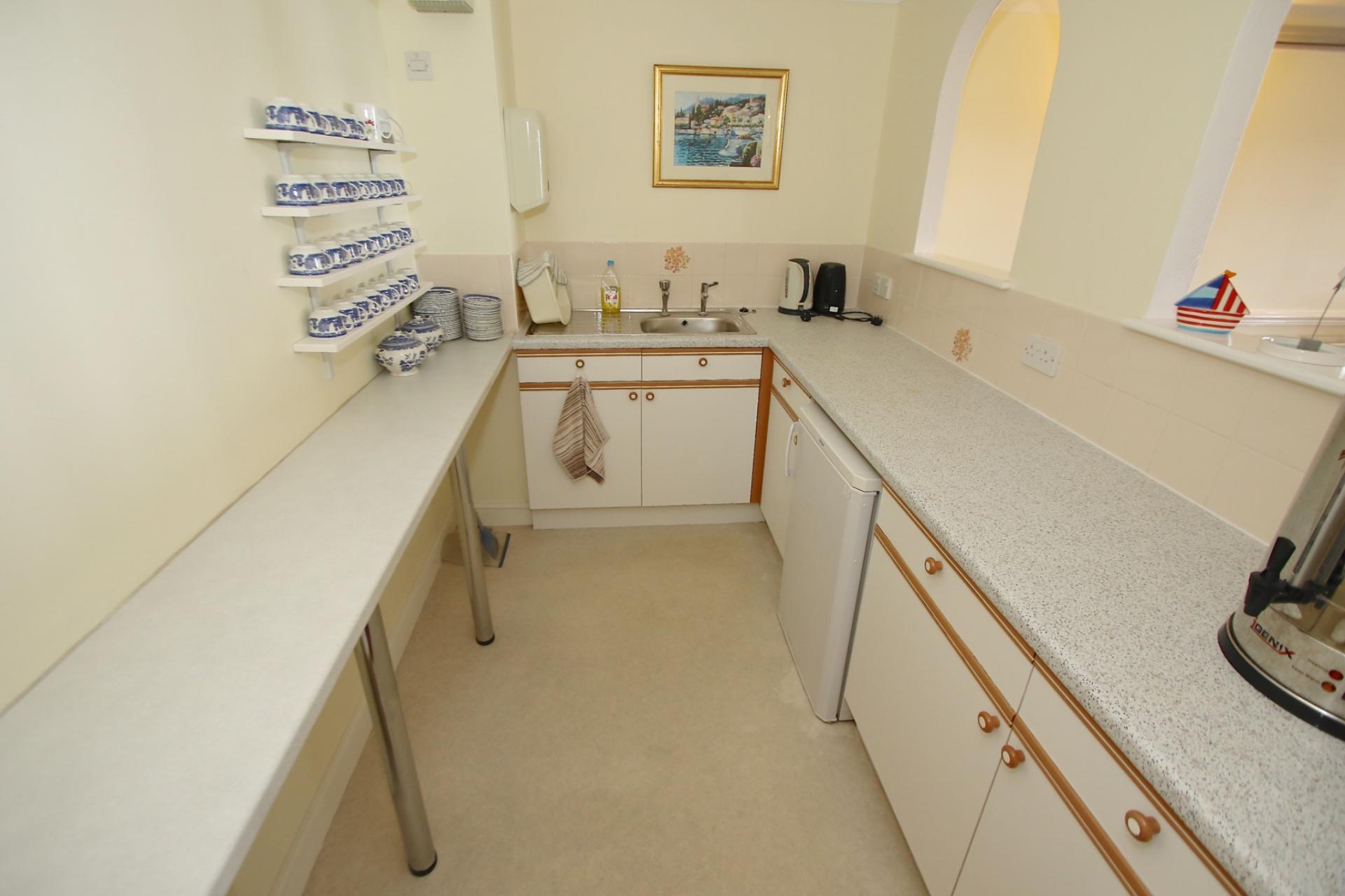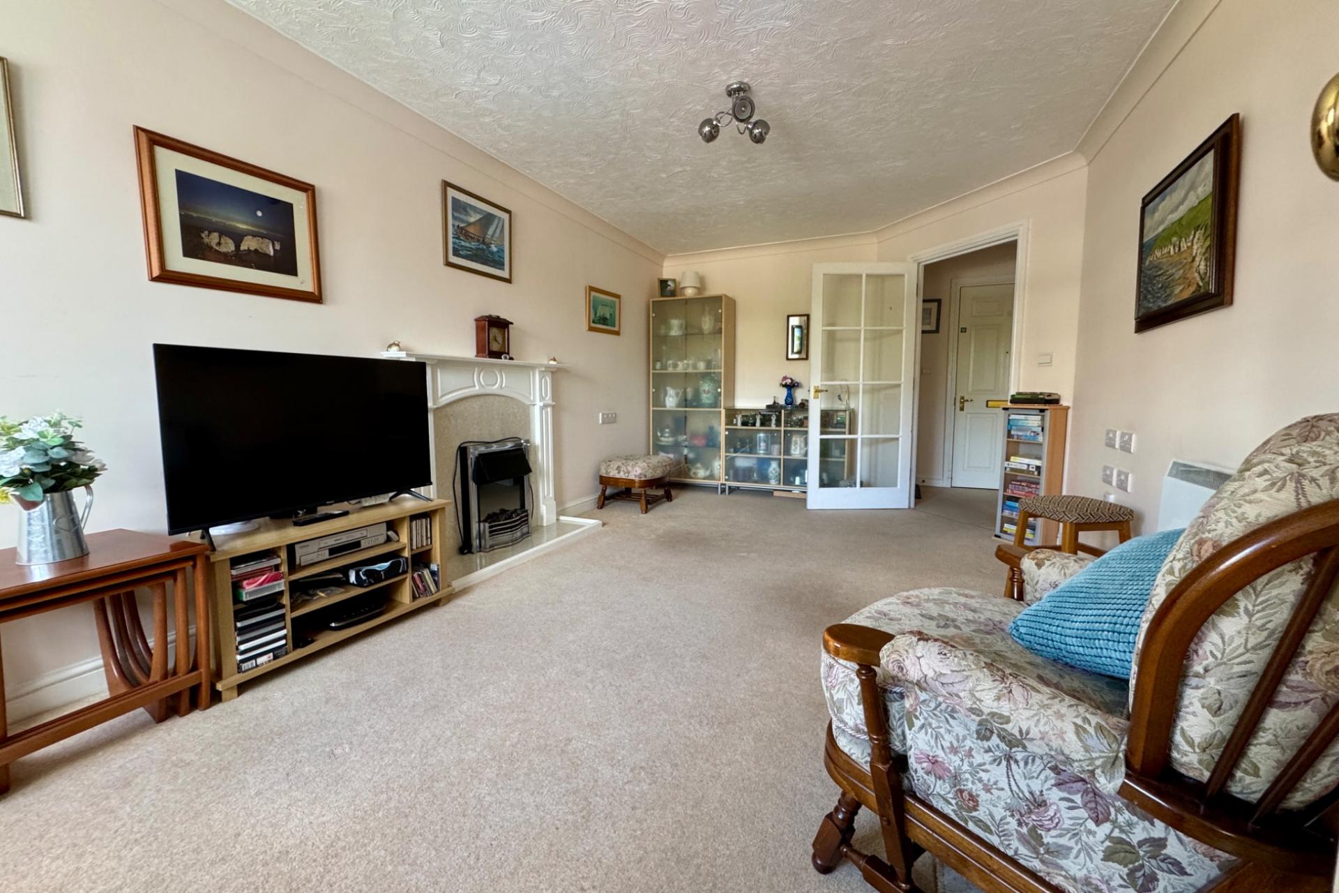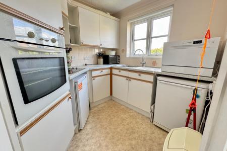 The entrance hall welcomes you to this well appointed retirement apartment which has been decorated with a neutral decor throughout to accentuate the light and spatial feeling. The good sized living room faces West and has an imitation fireplace with wooden surround. Glazed double doors lead to the kitchen fitted with a range of units, contrasting worktops, integrated electric oven and hob (hob disconnected).