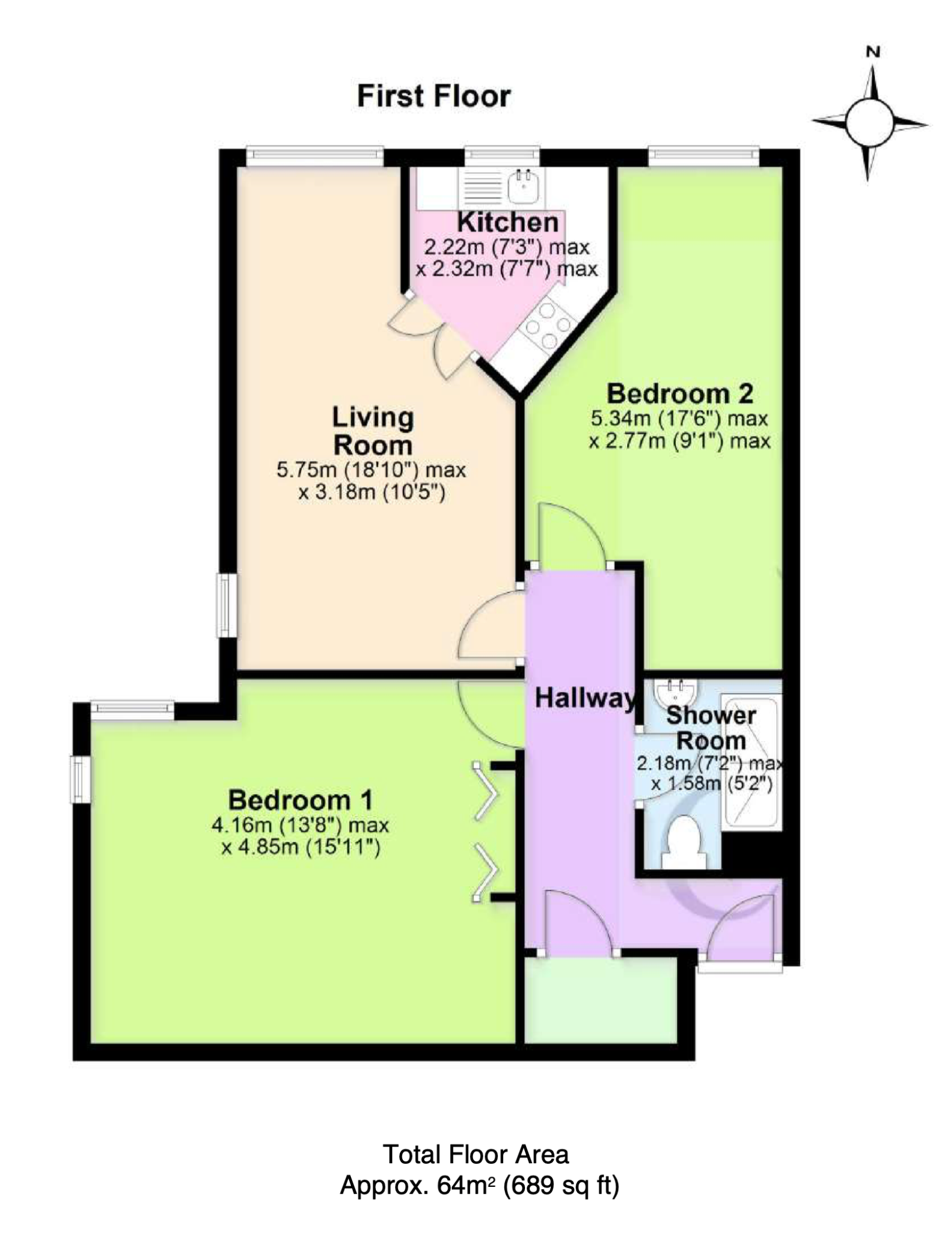 Bedroom 2 5.34m max x 2.77m max (17'6" max x 9'1" max)