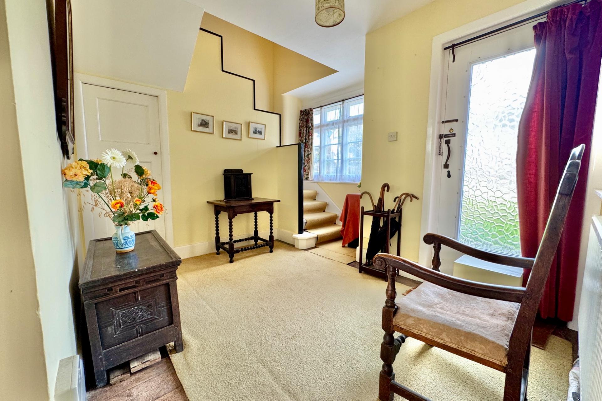 The spacious entrance hall welcomes you to St. Michaels and leads through to the large South facing living room with tiled fireplace and double doors opening to the rear garden. A second reception room, currently used as a dining room is at the front of the property. Beyond, the kitchen is fitted with a range of light units, contrasting worktops, a freestanding cooker, and has access to the side porch.