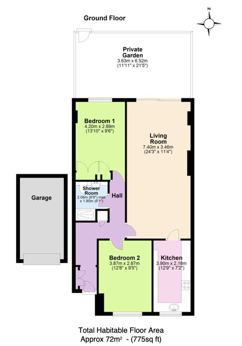 Private Garden 6.52m x 3.63m (21'5" x 11'11")