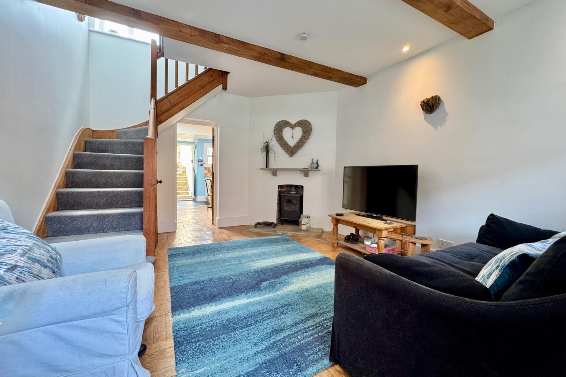 You are welcomed to this character cottage by the living room with feature wood burning stove and attractive woodblock flooring. Beyond, the kitchen is fitted with a stylish range of cream units, wooden worktops, integrated washing machine, dishwasher, electric oven, hob and microwave and has access to the rear garden. A cloakroom completes the accommodation on this level.