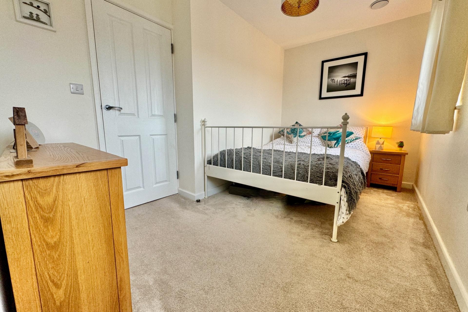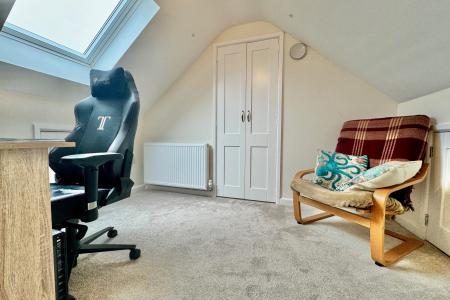 Bedroom three has a fitted wardrobe, easily accessible eaves storage and comprises the entire second floor.