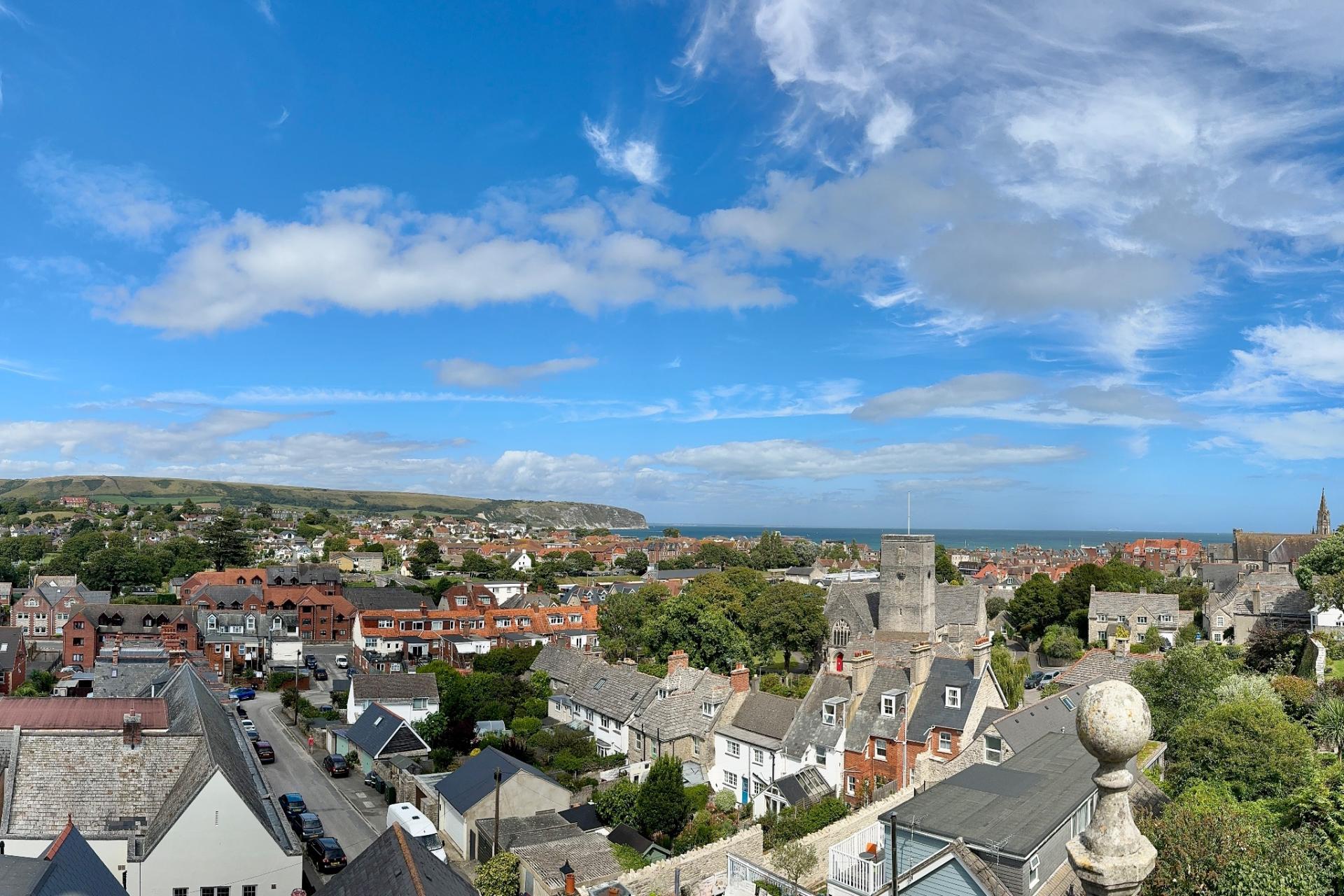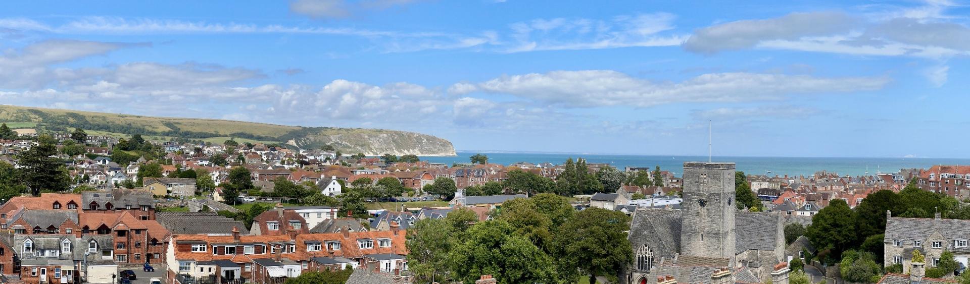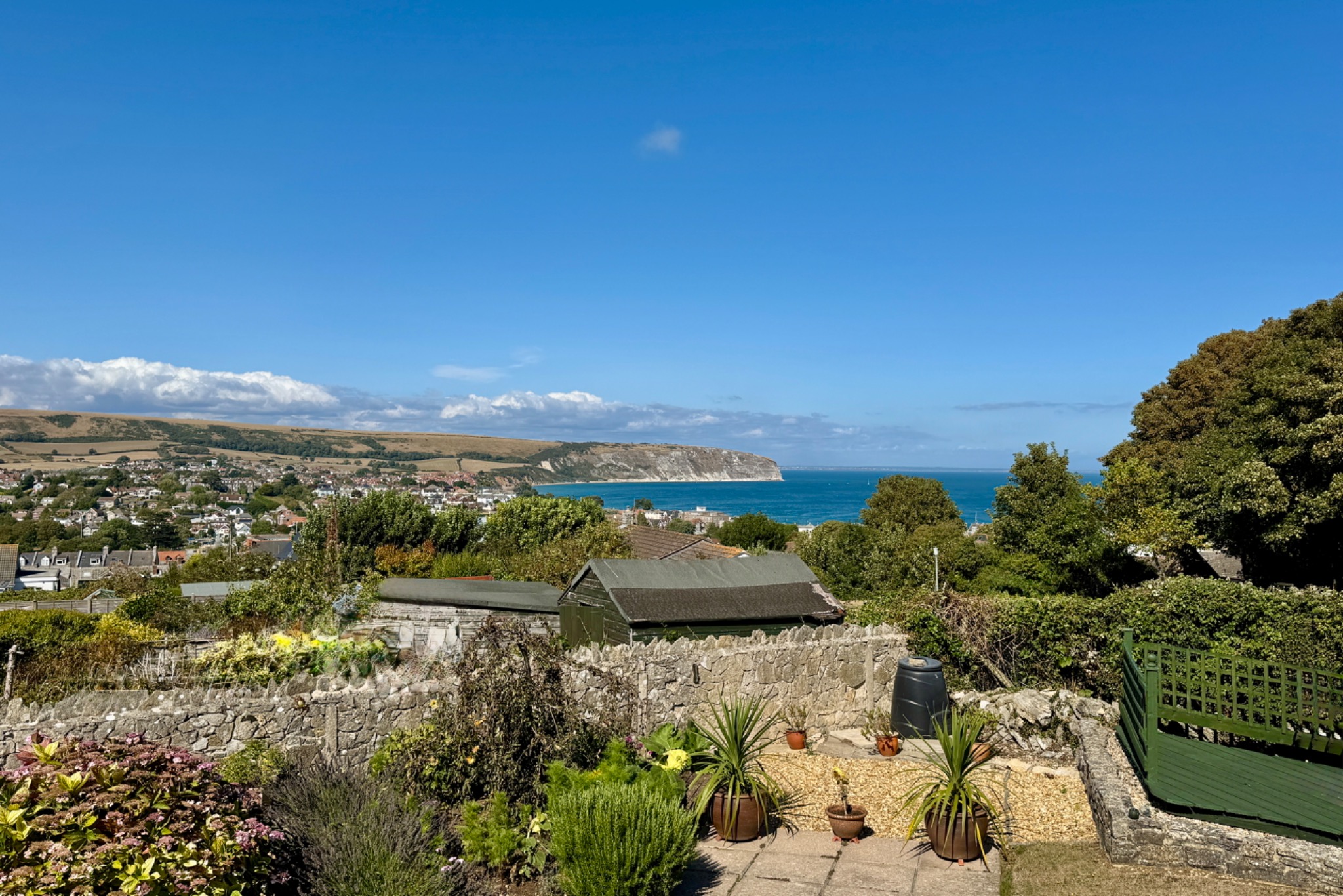 - PANORAMIC VIEWS OVER SWANAGE BAY AND THE PURBECK HILLS FROM THE REAR