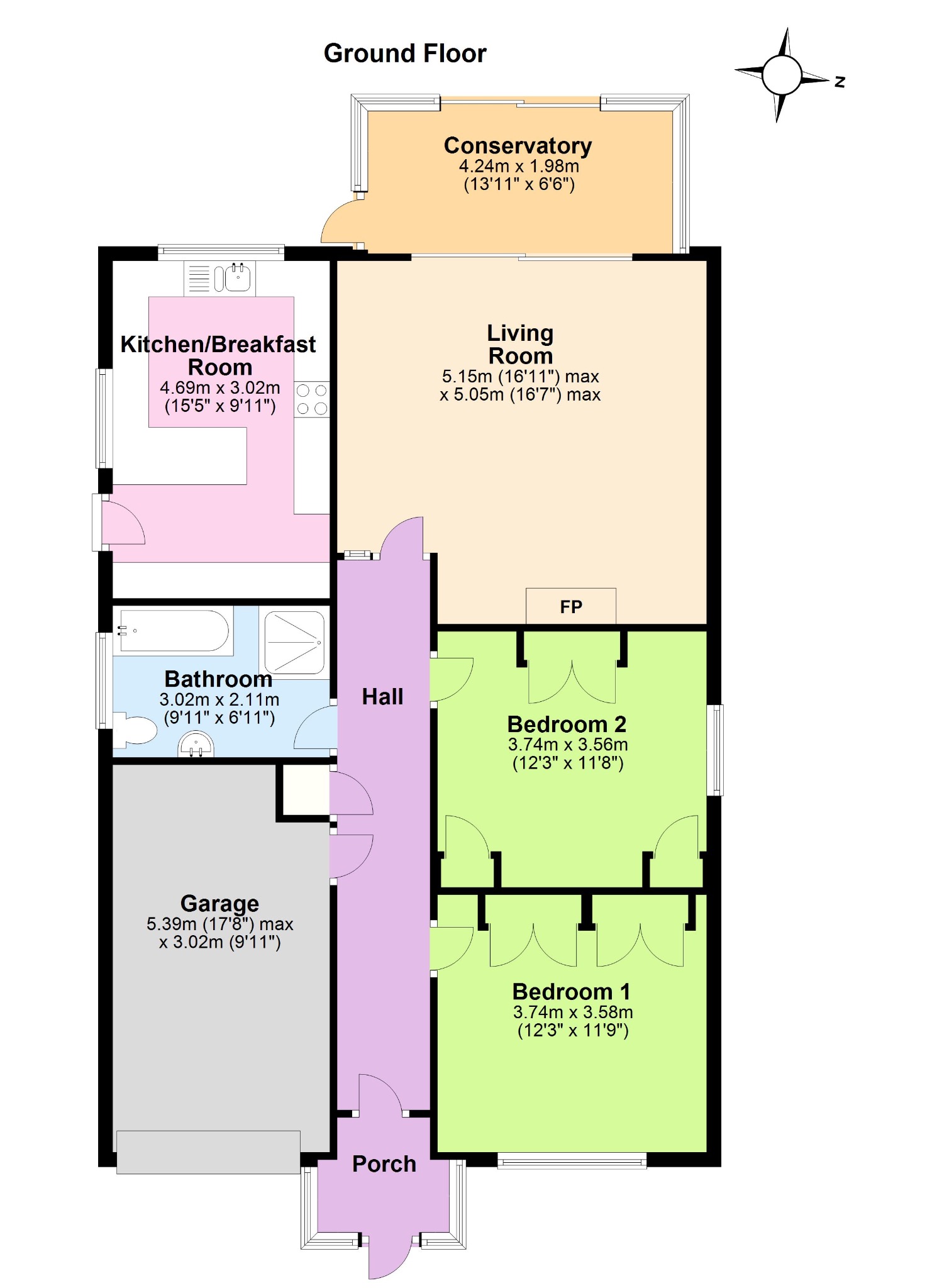There are two good sized double bedrooms, both with fitted wardrobes. Bedroom 1 is at the front of the property and Bedroom 2 is at the side. The family bathroom completes the accommodation.