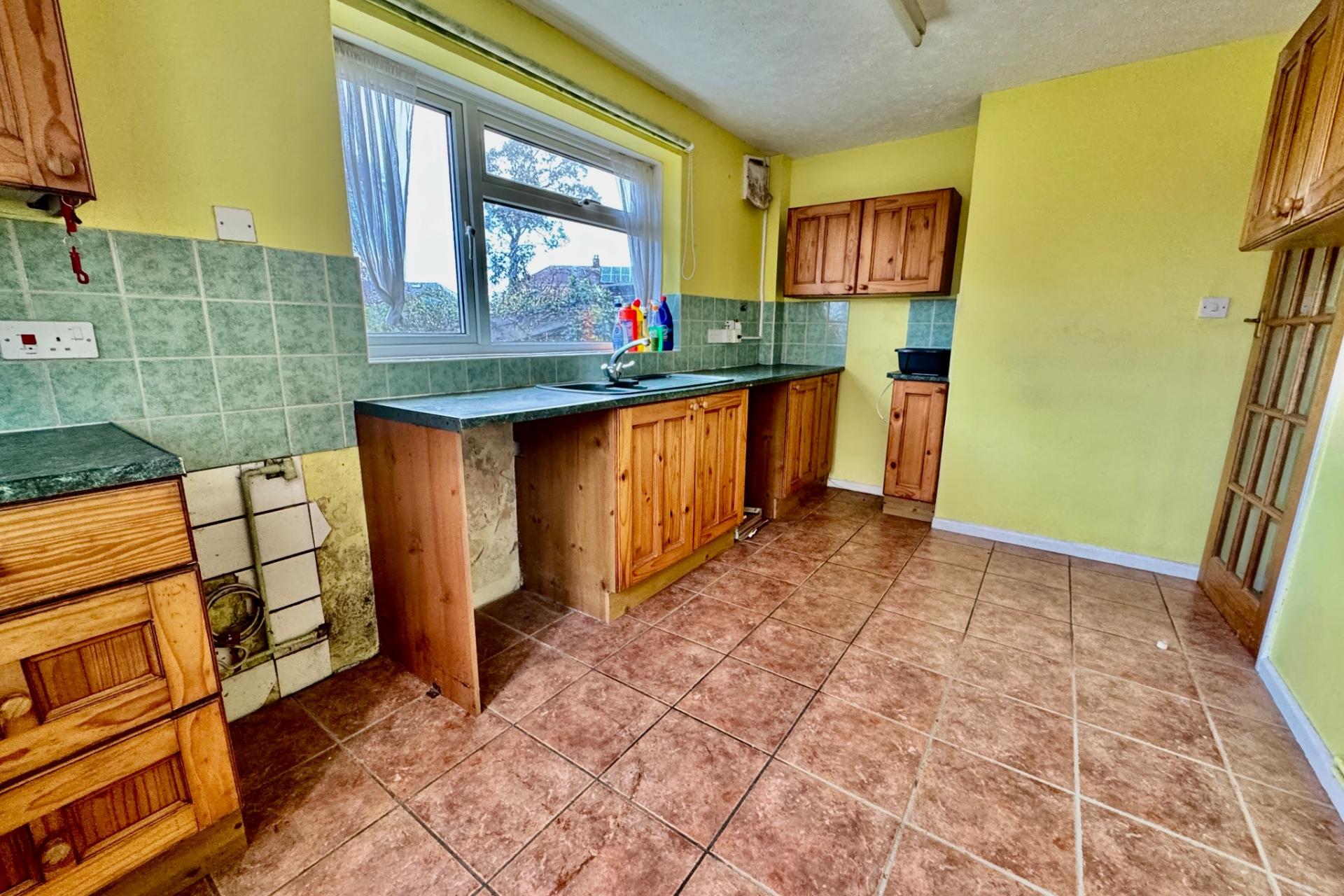 You enter this family home by a small entrance porch which leads to the hallway, which is central to the accommodation. Leading off, the spacious living/dining room spans the entire depth of the property and has a Purbeck stone fireplace with fitted electric fire. The kitchen is in need of replacement and looks out over the rear garden. There is a door leading to the rear garden from this room.