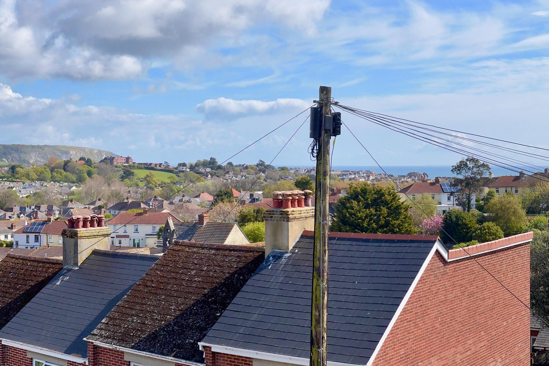 - VIEWS OVER THE TOWN TO THE PURBECK HILLS AND SWANAGE BAY