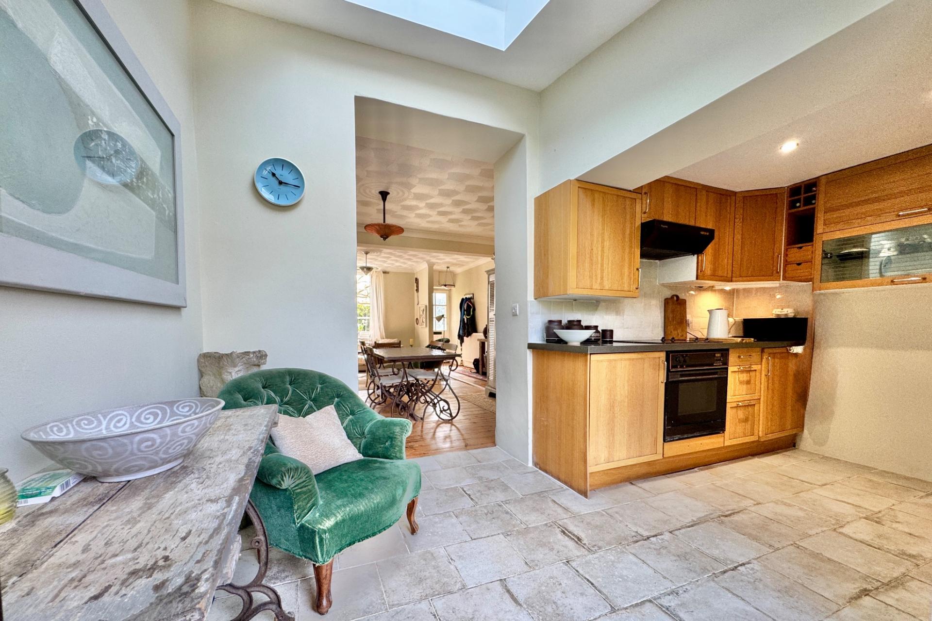 The pretty cottage garden sets the scene and welcomes you to this character cottage. At the front of the property, the generously sized open plan living/dining room has an attractive fireplace and wood flooring. At the rear, the kitchen is fitted with a range of wood units with contrasting worktops, integrated electric hob and oven and space for washing machine and fridge. A skylight and double doors to the garden fill the space with natural light and open to the rear garden.