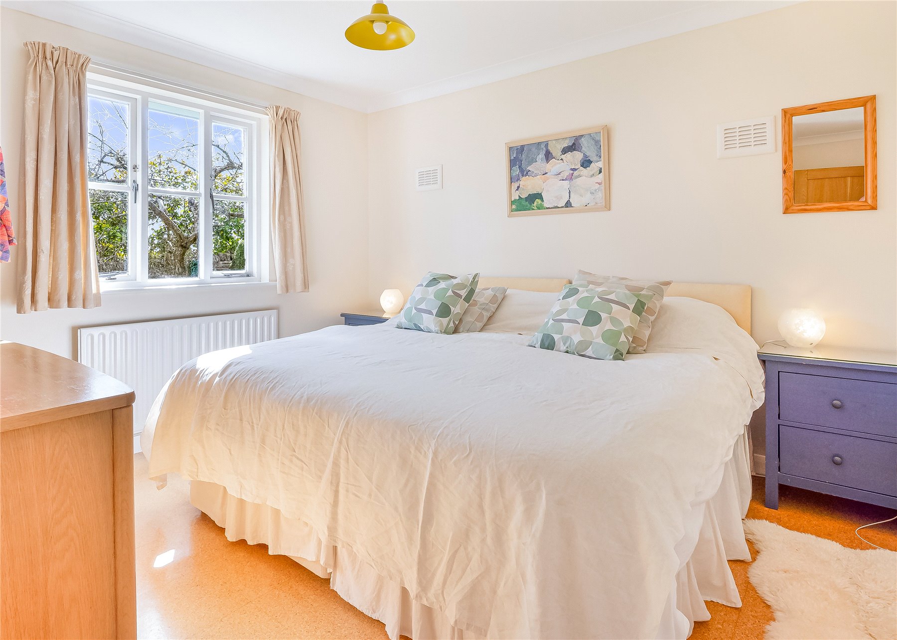 Continuing down the corridor, the sleeping accommodation is well arranged. There is a FAMILY BATHROOM, followed by a generously sized PRINCIPAL BEDROOM which also benefits from an ENSUITE shower room. Opposite is BEDROOM 2, a spacious double with views across the front garden. BEDROOM 3 is another well-proportioned double, enjoying sunny views towards the garden and its established fruit trees.