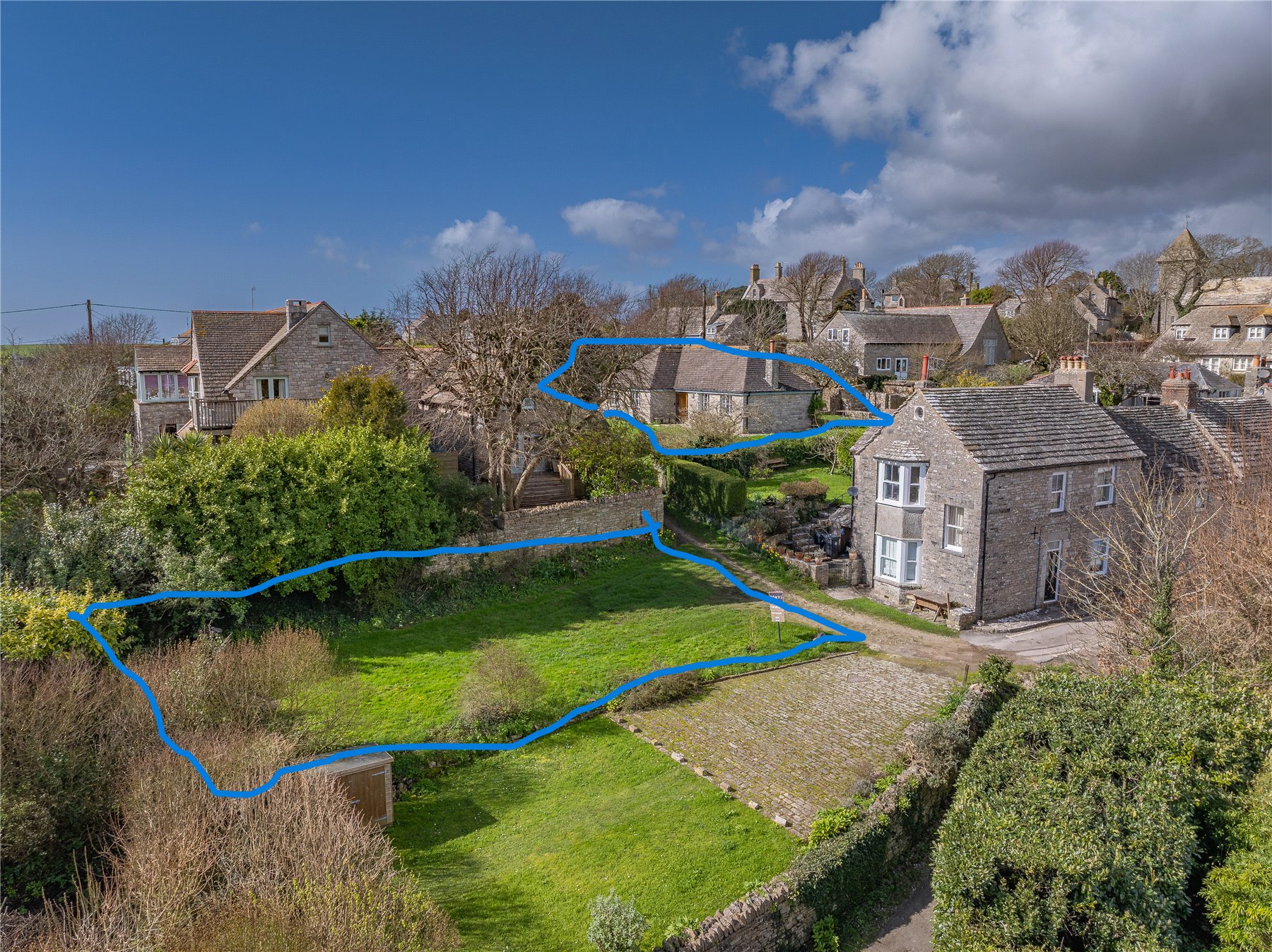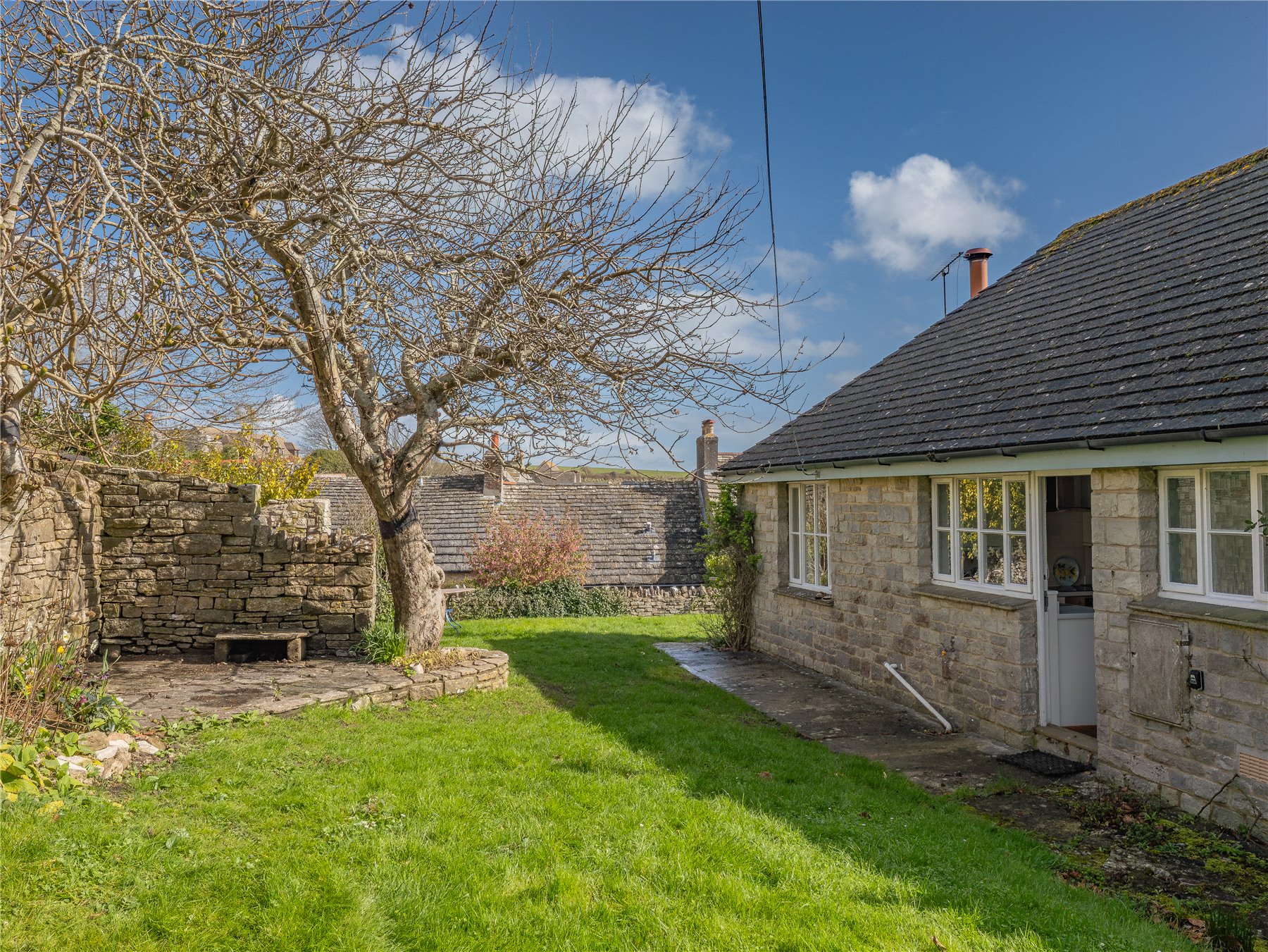 Wild Hill is a rare opportunity to acquire a charming cottage tucked away in the heart of Worth Matravers. Set just back from the iconic stone quarrymens cottages, the property enjoys an immediate sense of space and light on approach. This single storey Purbeck stone home sits within a generous plot and offers clear potential to extend upwards, subject to the necessary planning consents.
