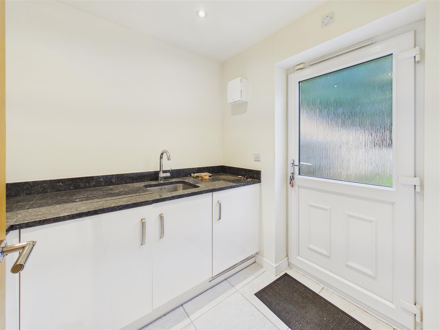 Utility Room - With sink & drainer atop fitted units and worksurfaces and door to the rear. There is an integrated washing machine and a tumble tryer.