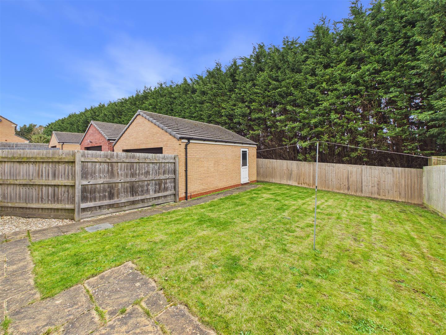 Outside - There is a paved patio to the immediate rear of the property, followed by lawn. Adjacent to the lawn is a double garage, to which a driveway runs at the side of the property, providing comfortable off-street parking for up to three vehicles.