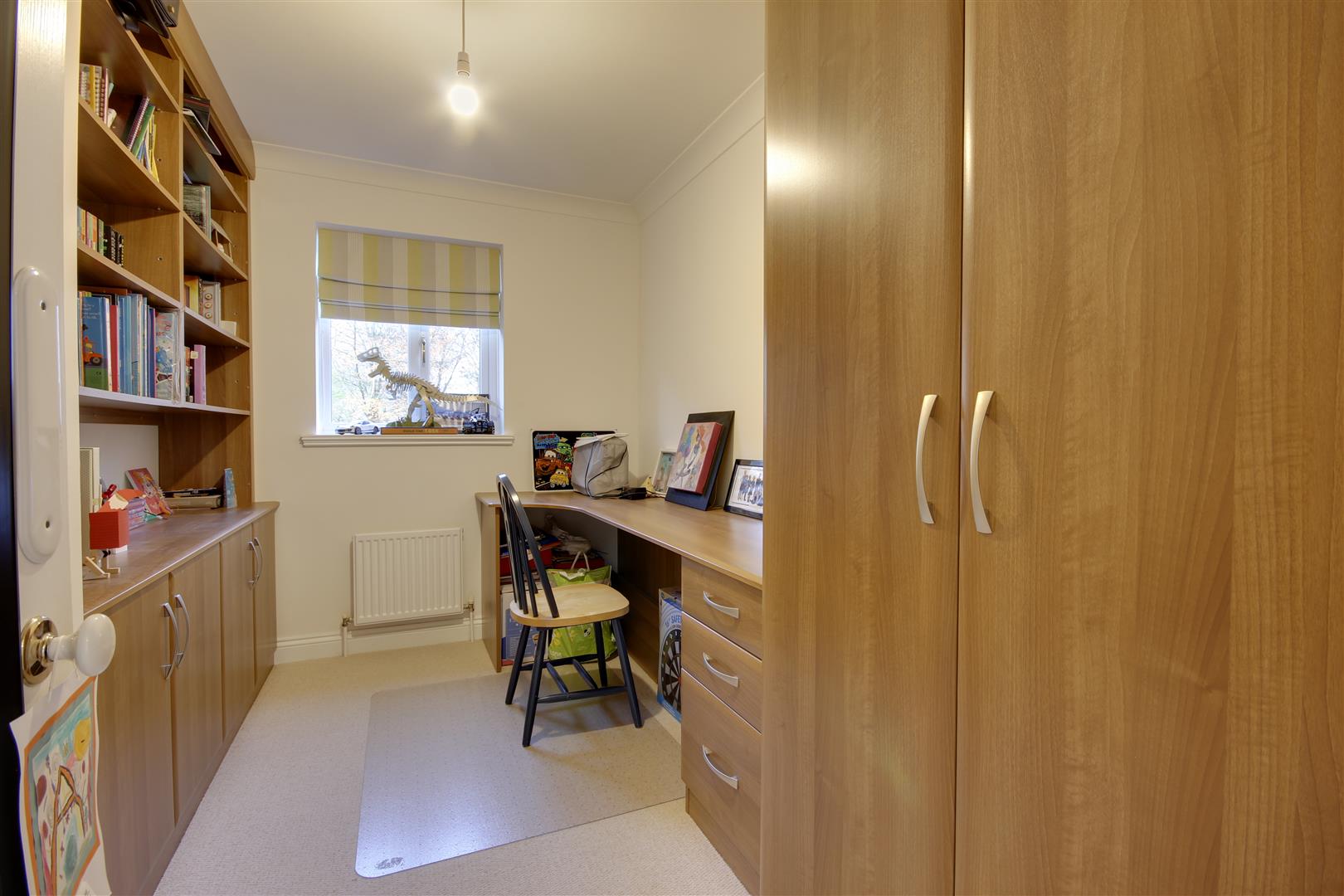 Bedroom 5 / Study - 3.35m x 2.21m approx (11'0" x 7'3" approx) - With a range of fitted furniture including cupboards, desk and bookshelves. Window to rear.