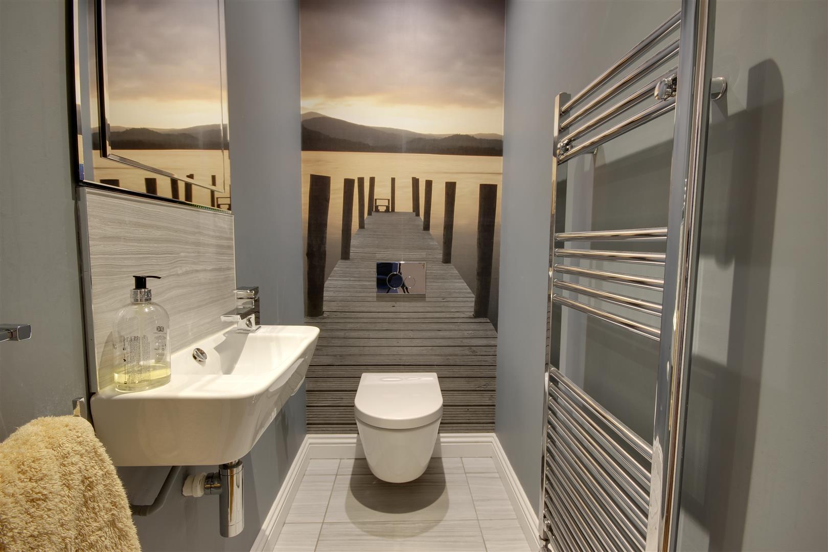 Cloaks/W.C. - With modern suite comprising a low flush W.C. and wash hand basin. Heated towel rail and inset spot lights.