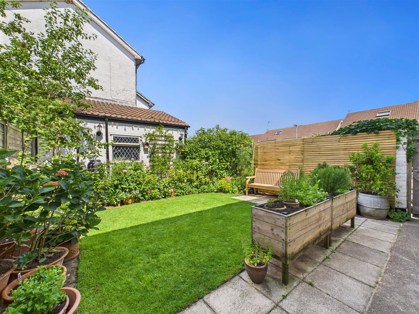 Outside - Attractive gardens extend to the front and side, while a driveway and garage are conveniently positioned at the rear. The delightful enclosed rear garden is predominantly lawned, enhanced by charming mature planted borders, providing a perfect outdoor space.